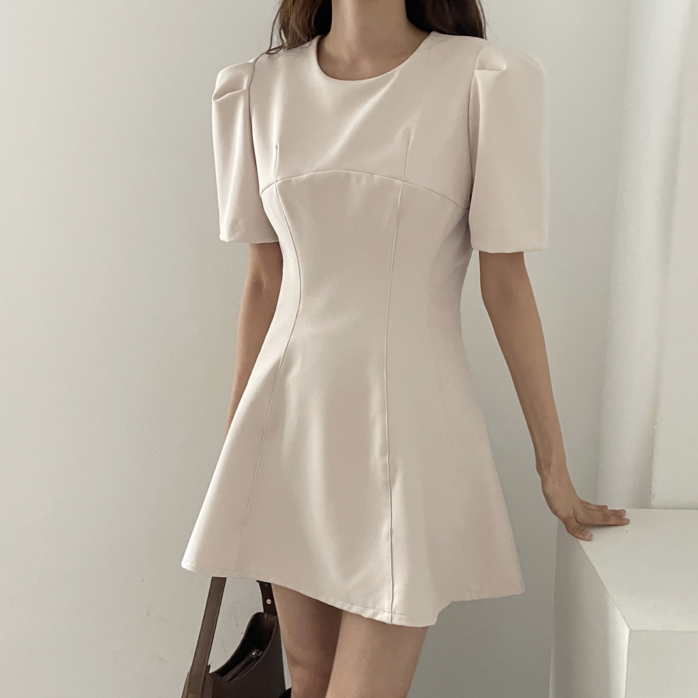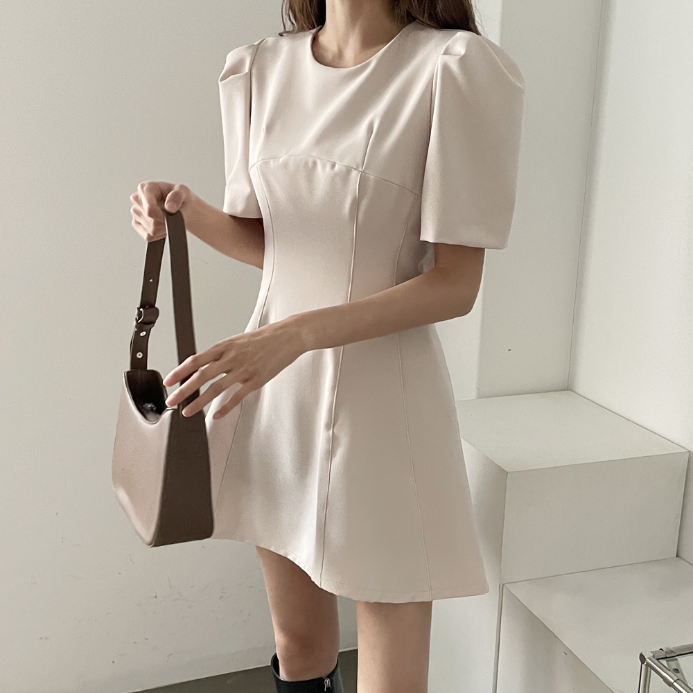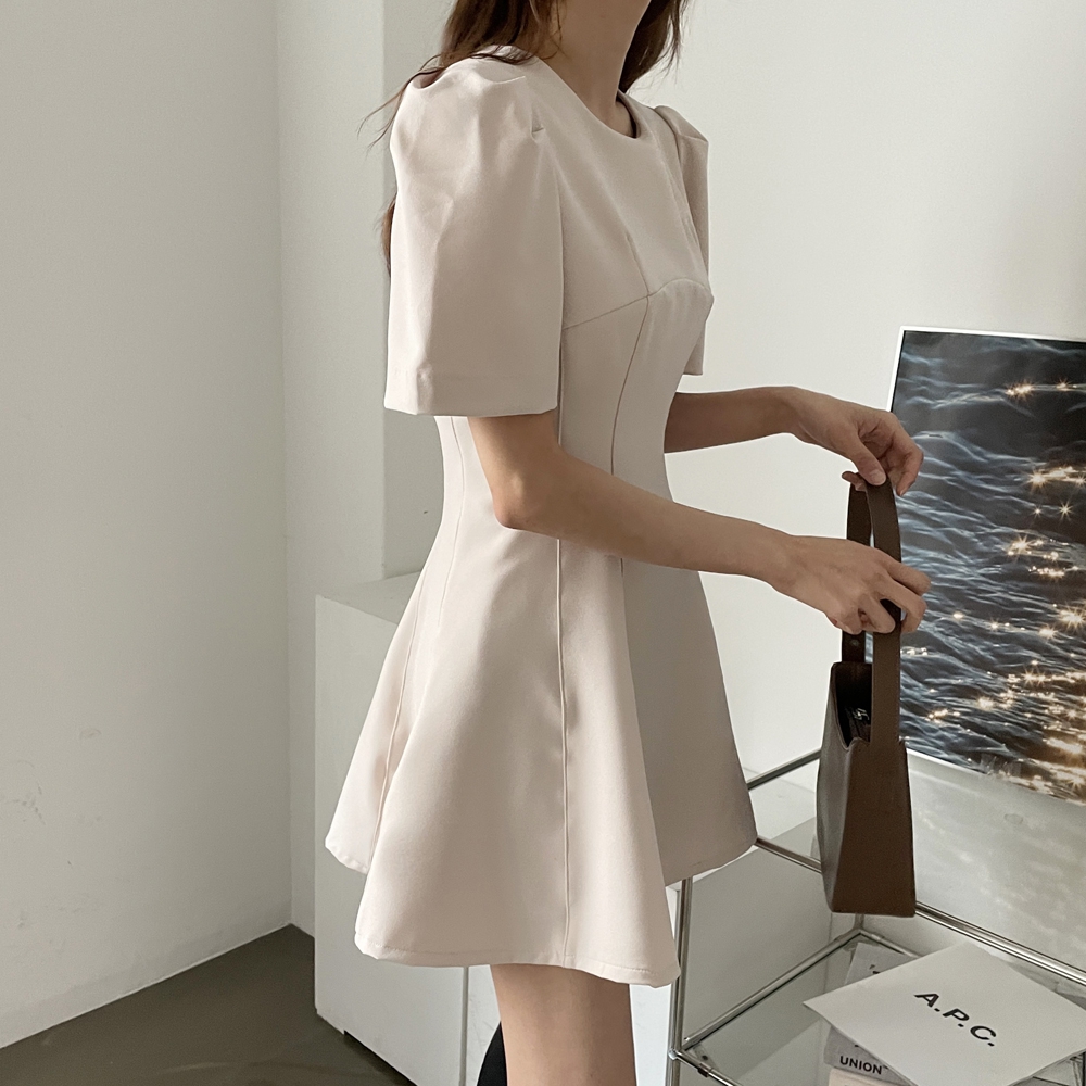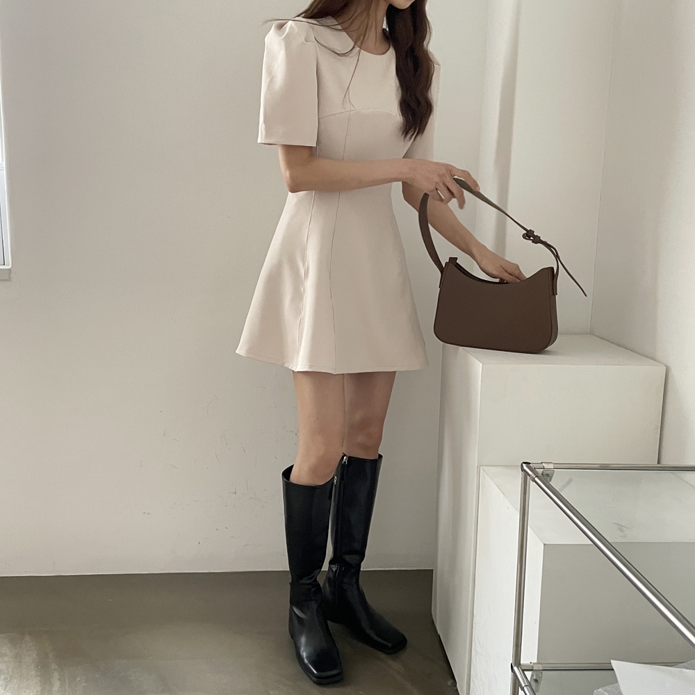 - A라인 절개 반팔 미니 원피스