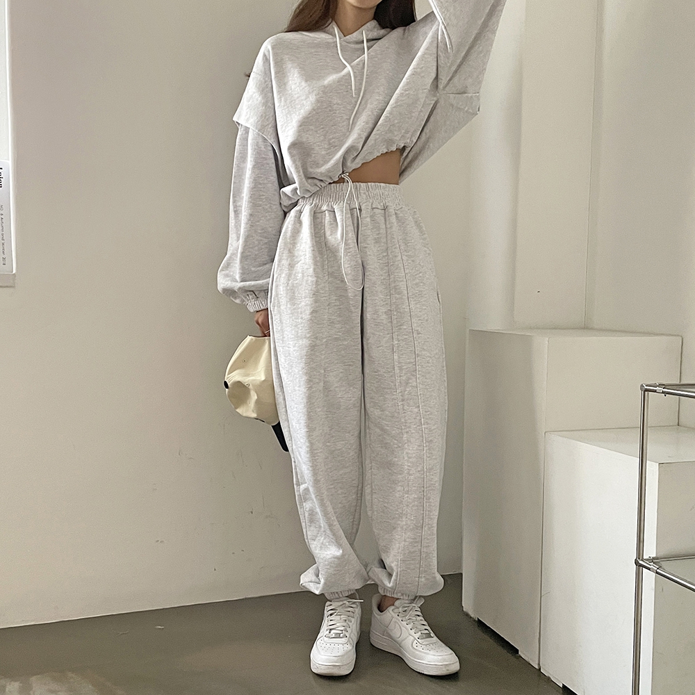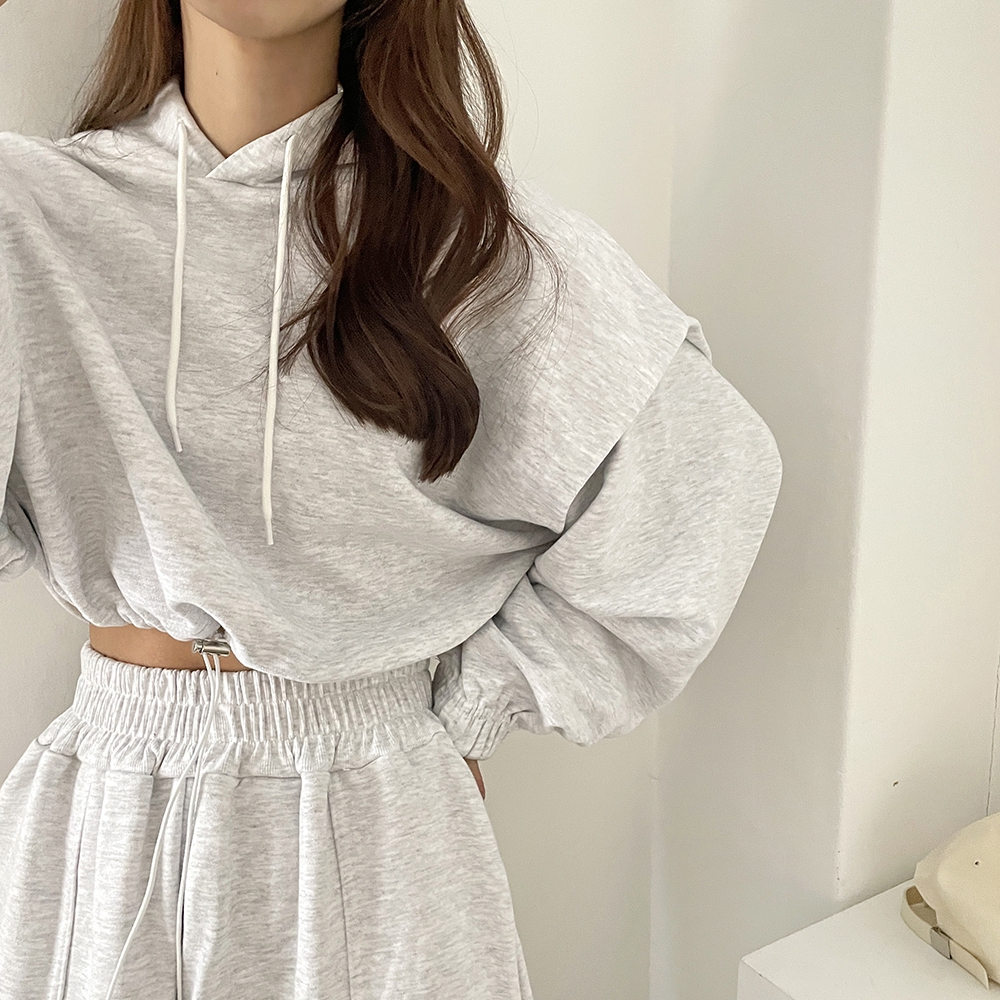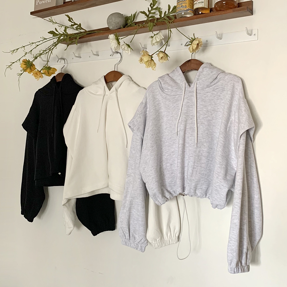 - 크롭 스트링 후드티