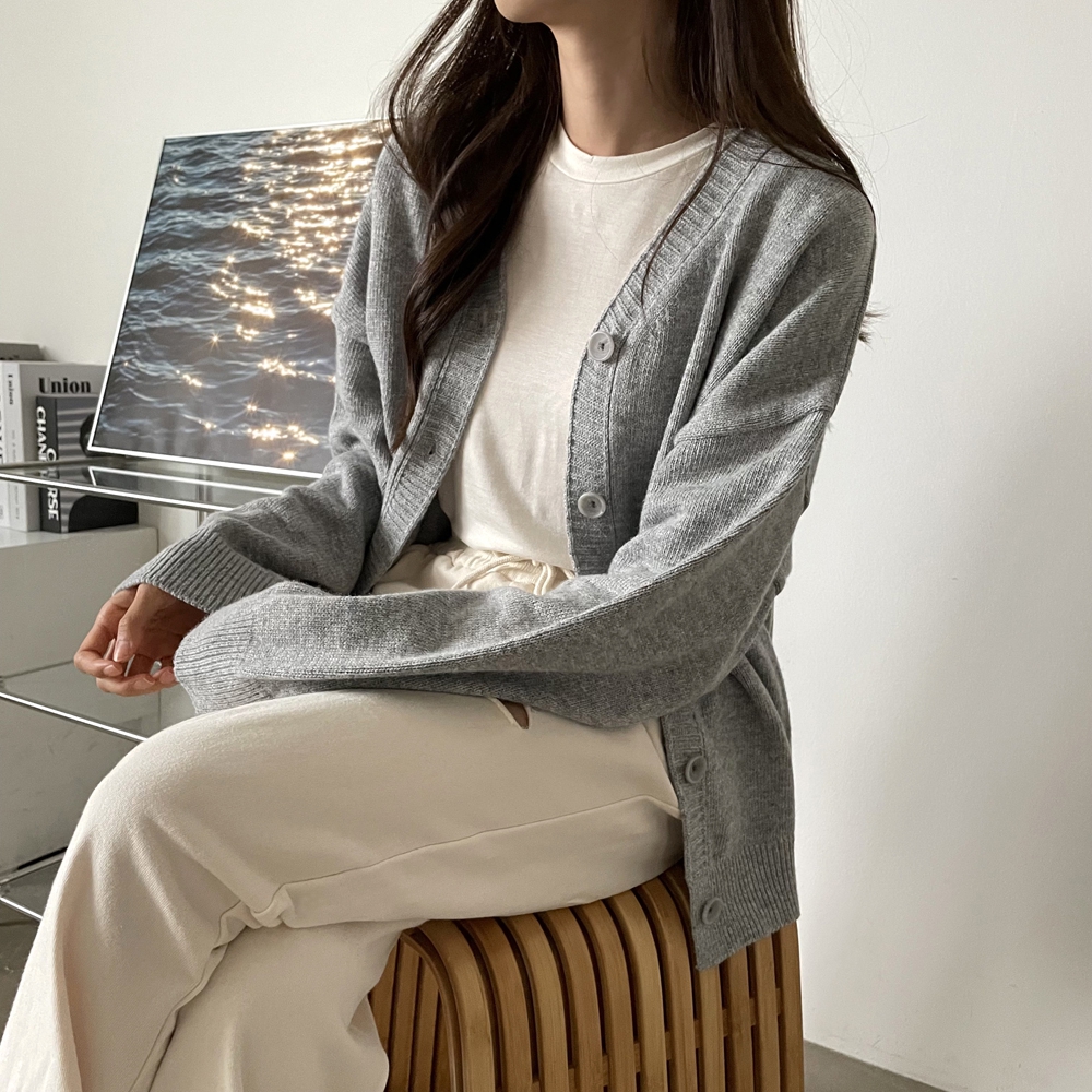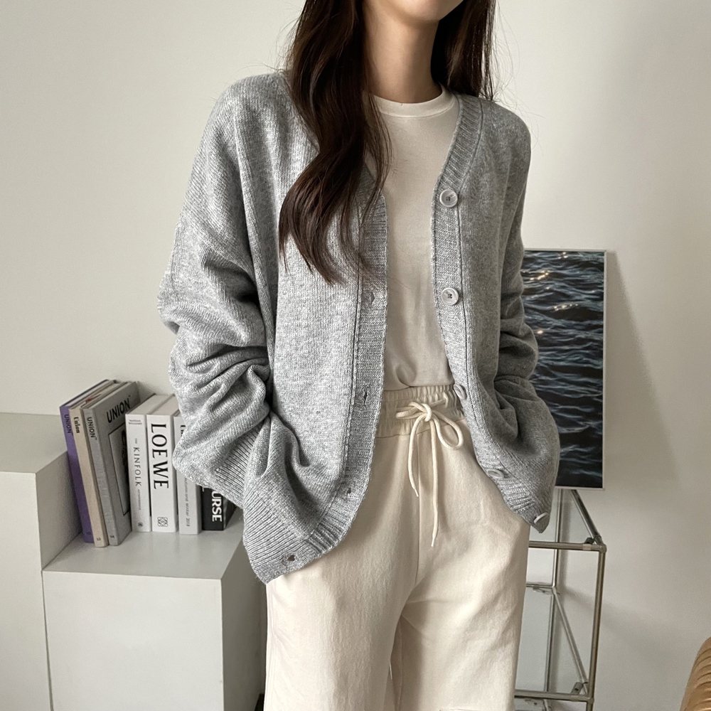 v넥 라인으로 이너 아이템과 레이어드는 물론