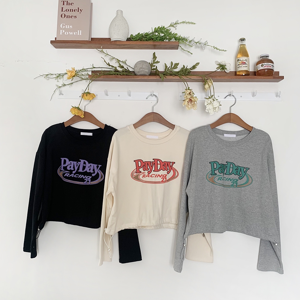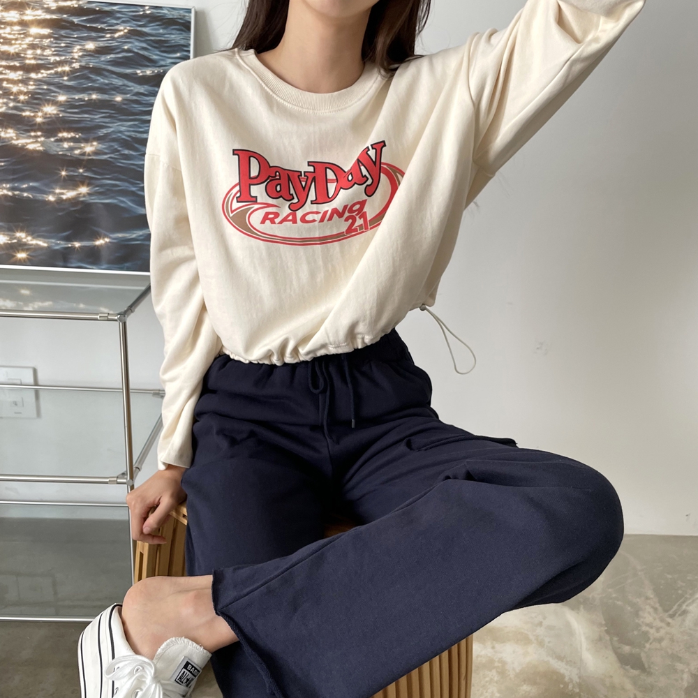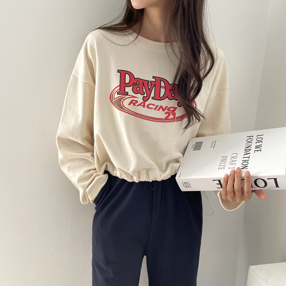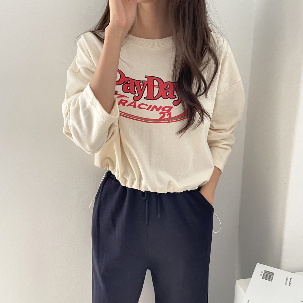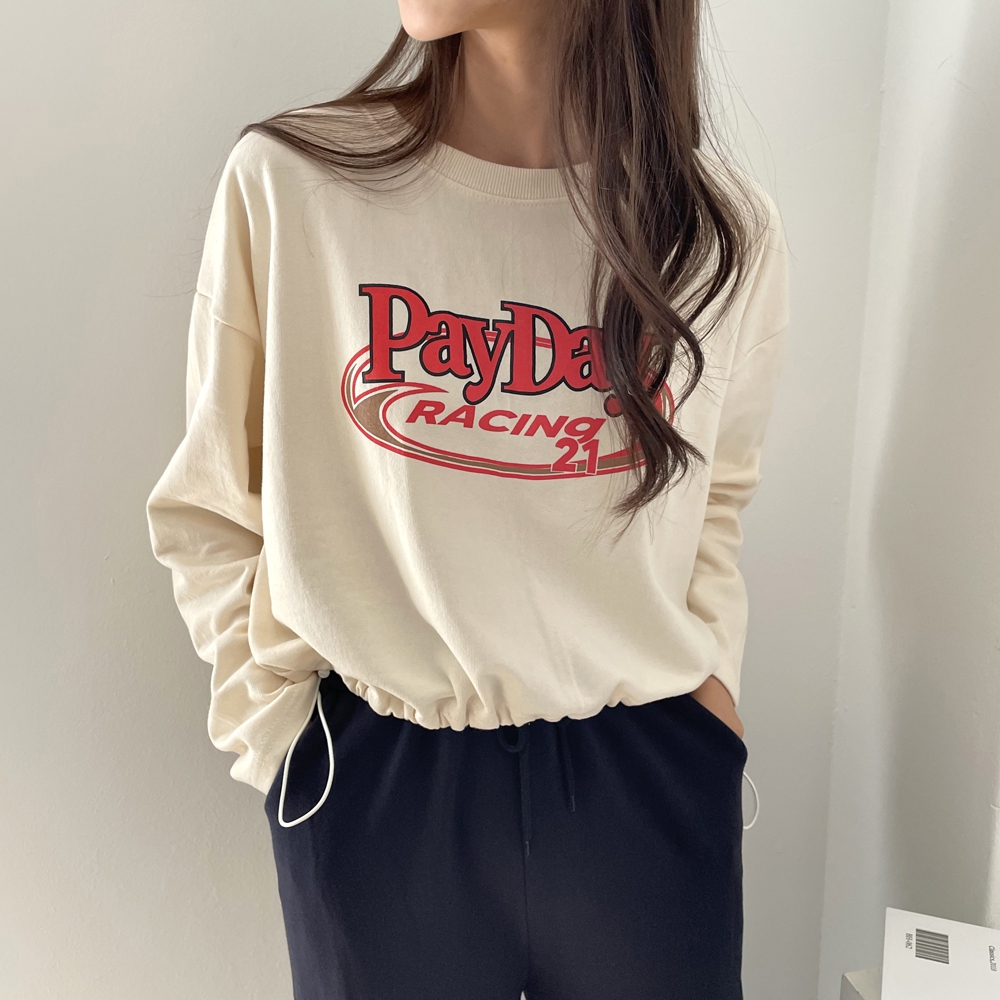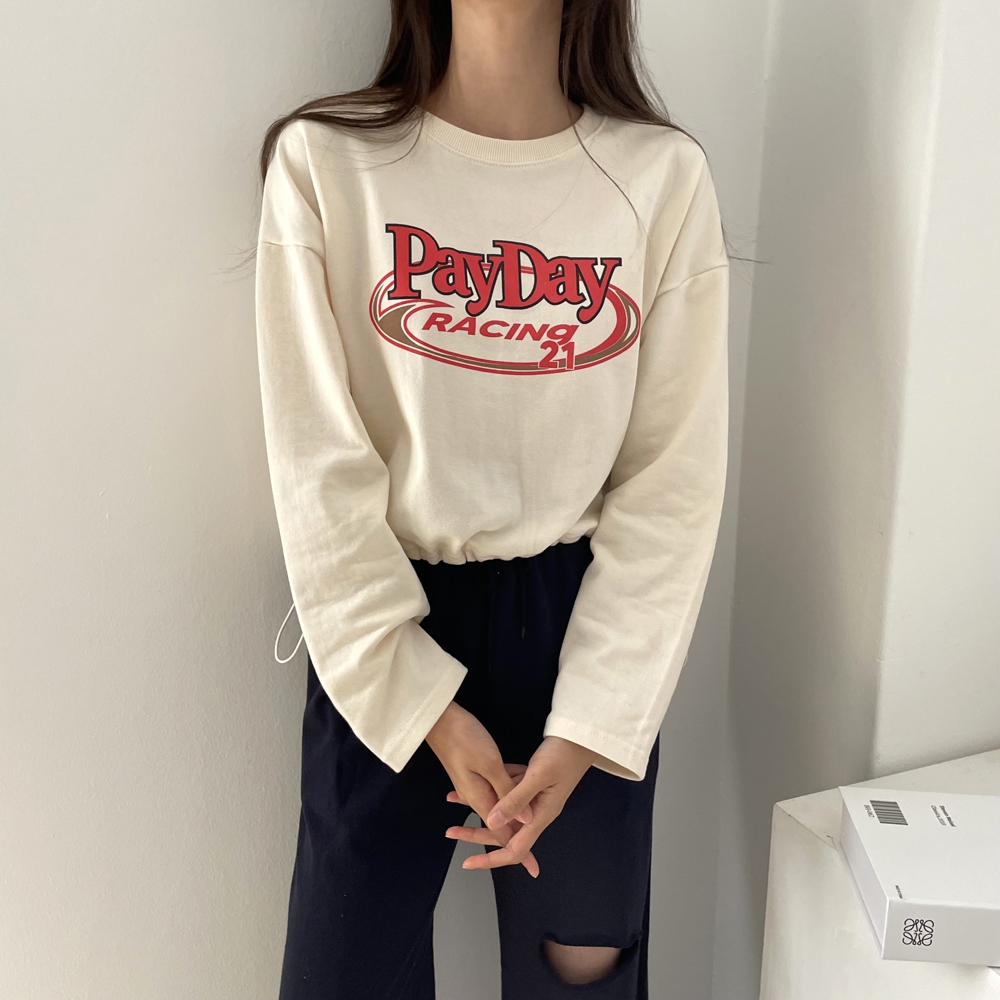 - 페이데이 영문 레터링 라운드 밑단 스트링 티셔츠