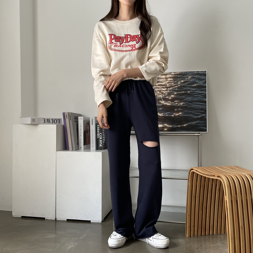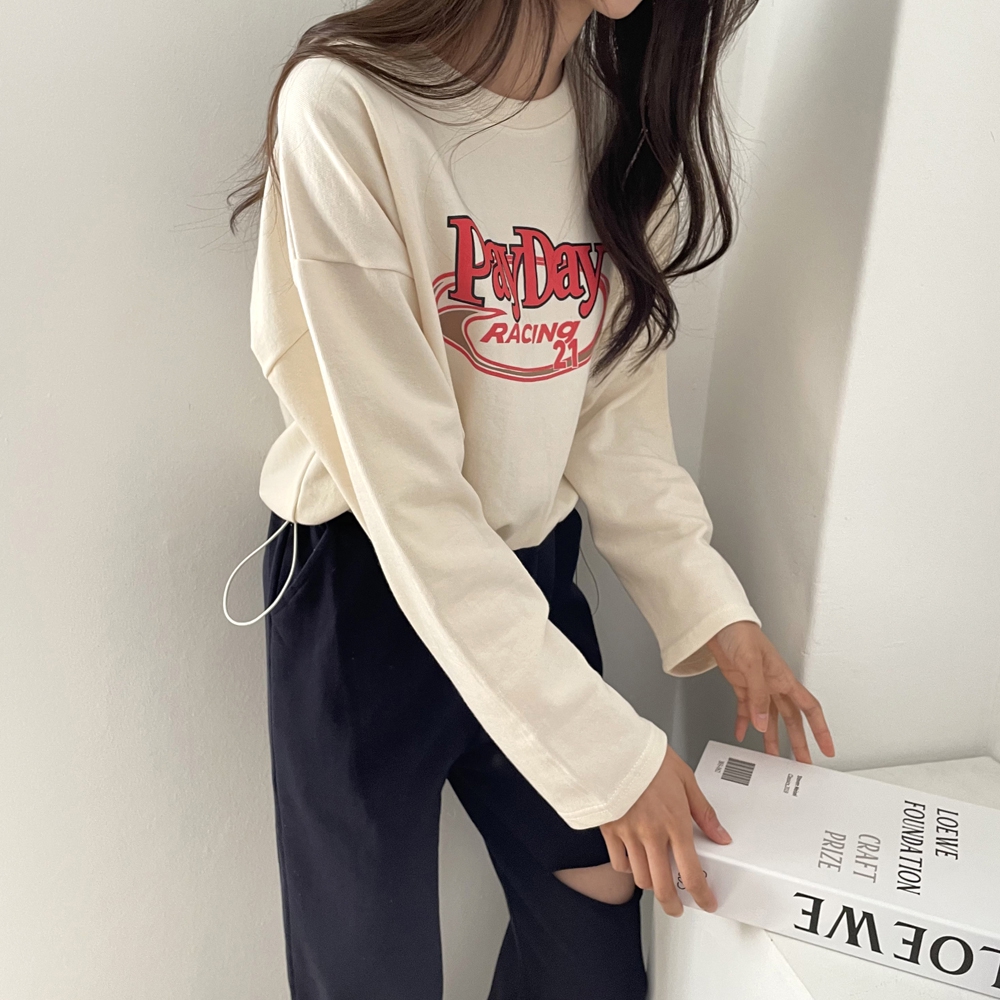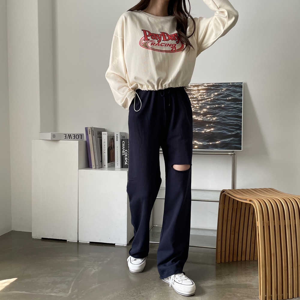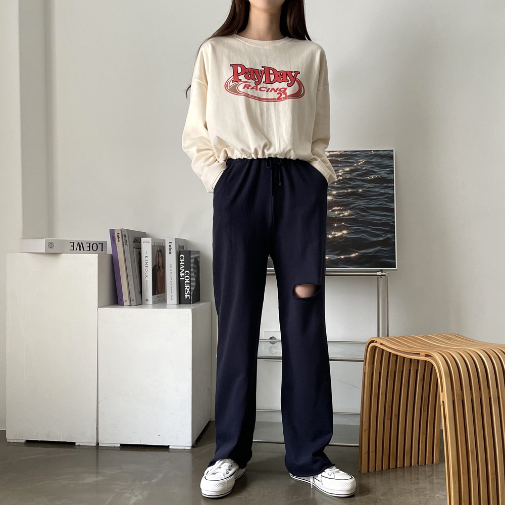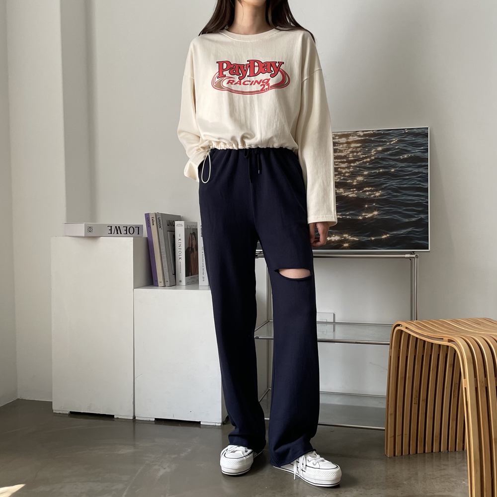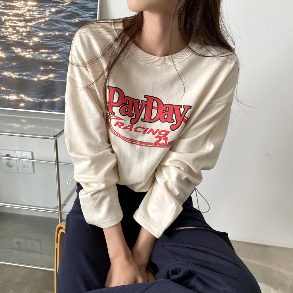 - 페이데이 영문 레터링 라운드 밑단 스트링 티셔츠