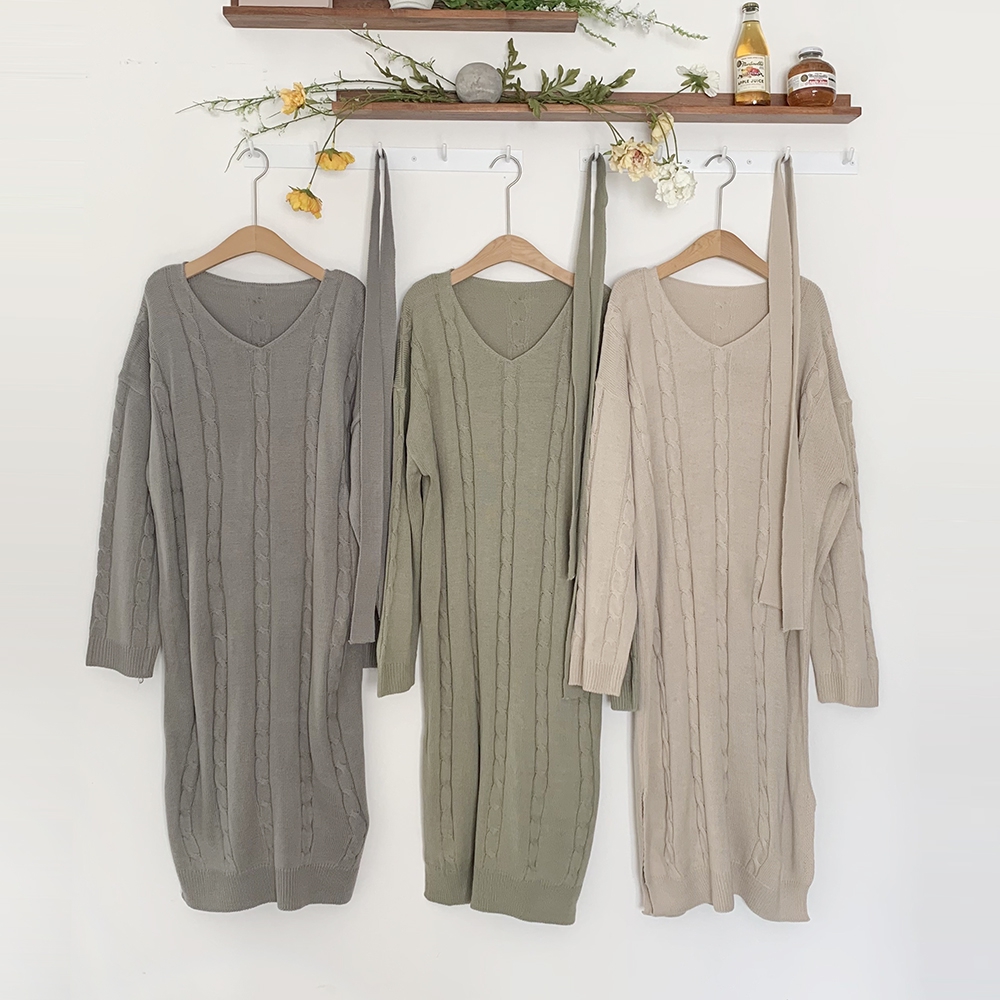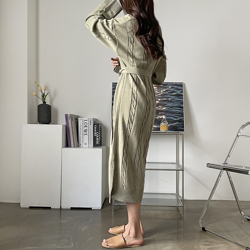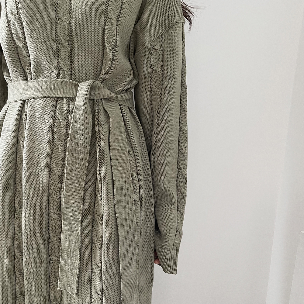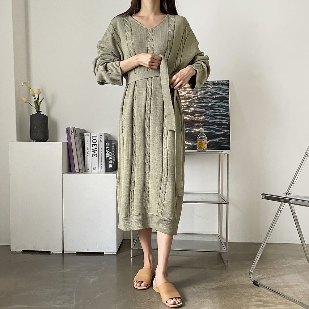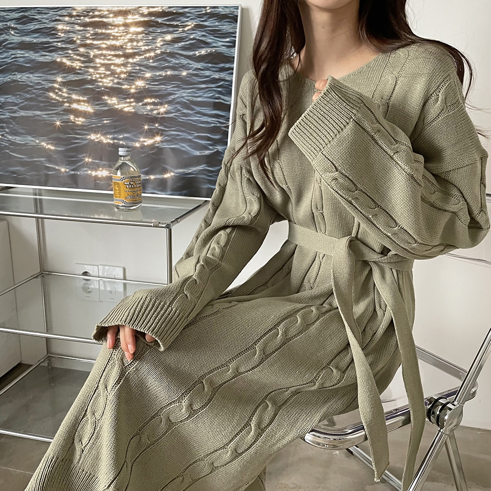 - 꽈배기 골지 벨트 롱원피스