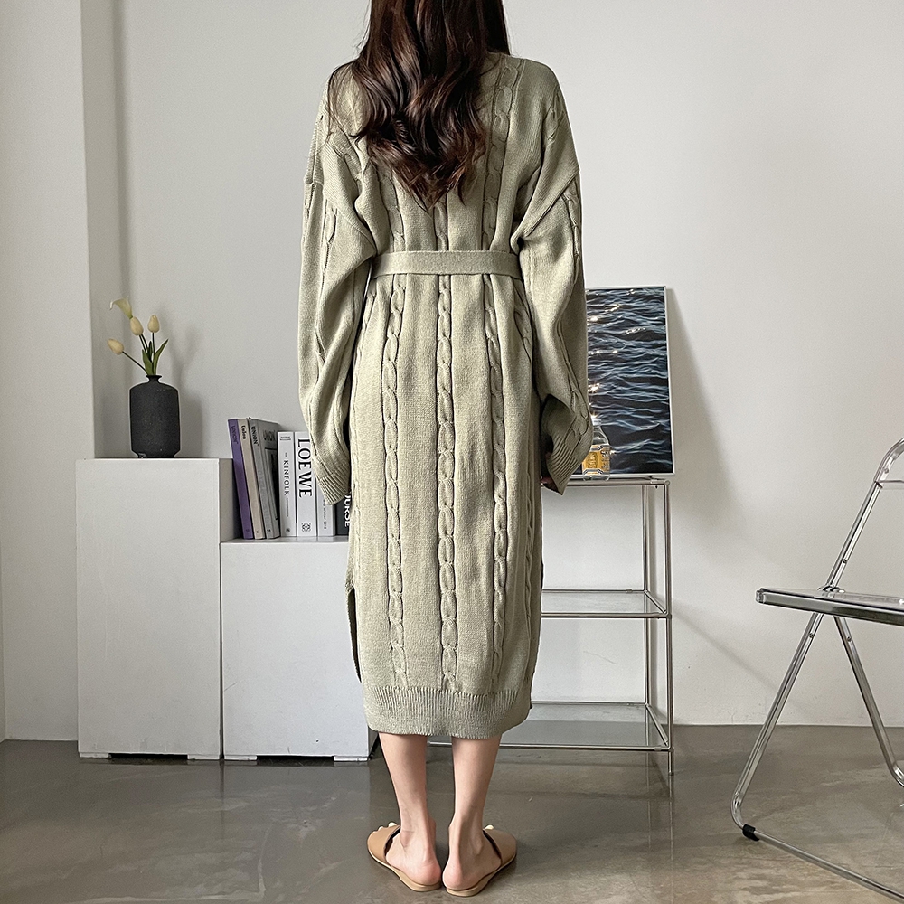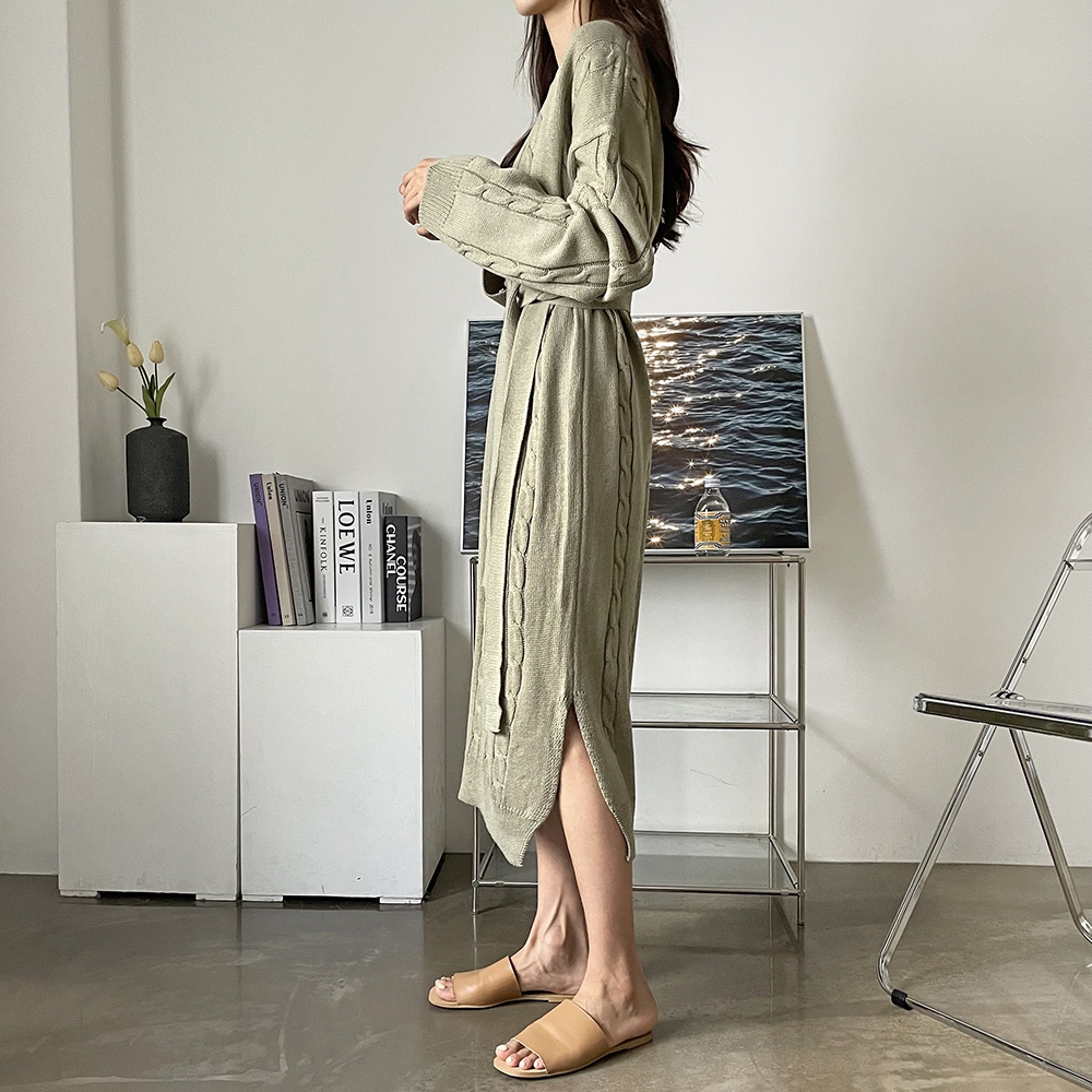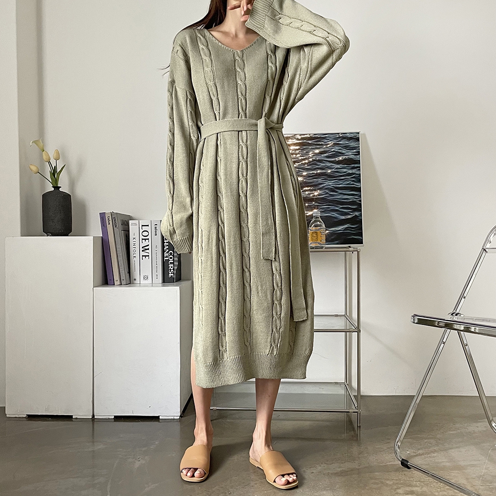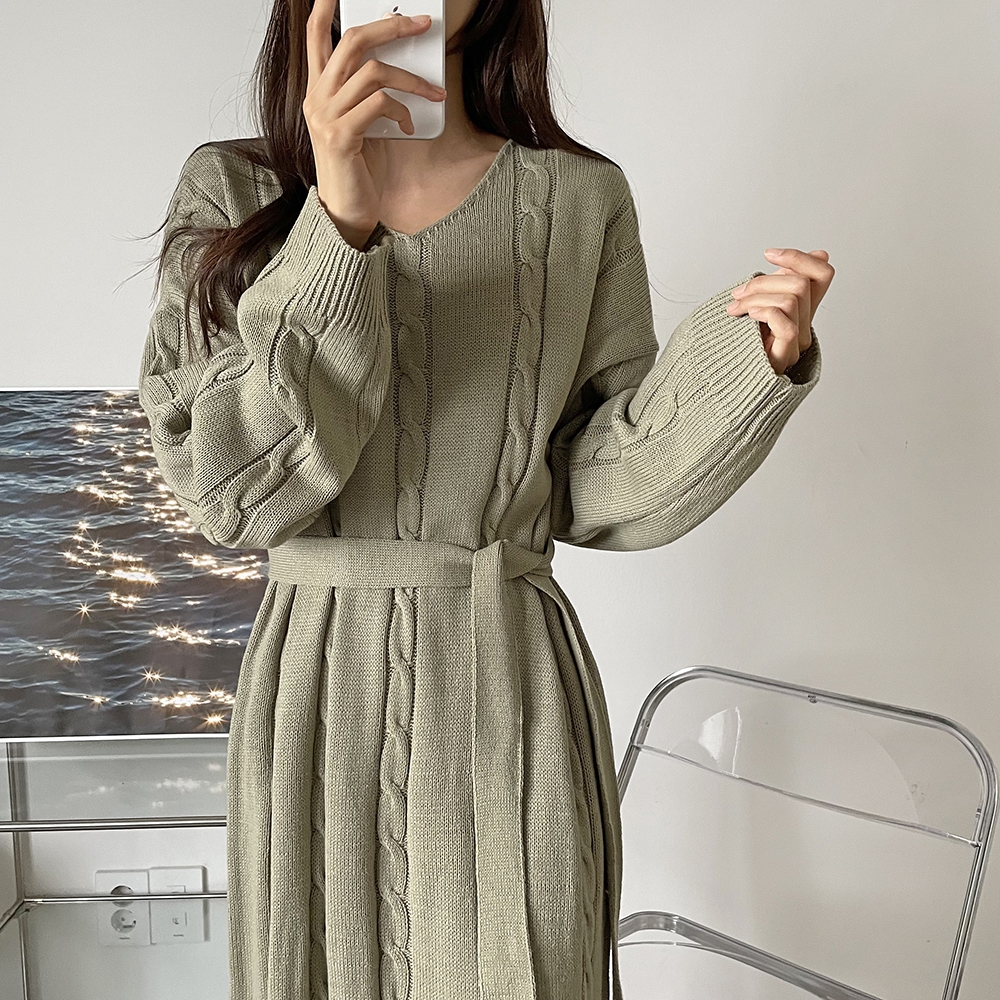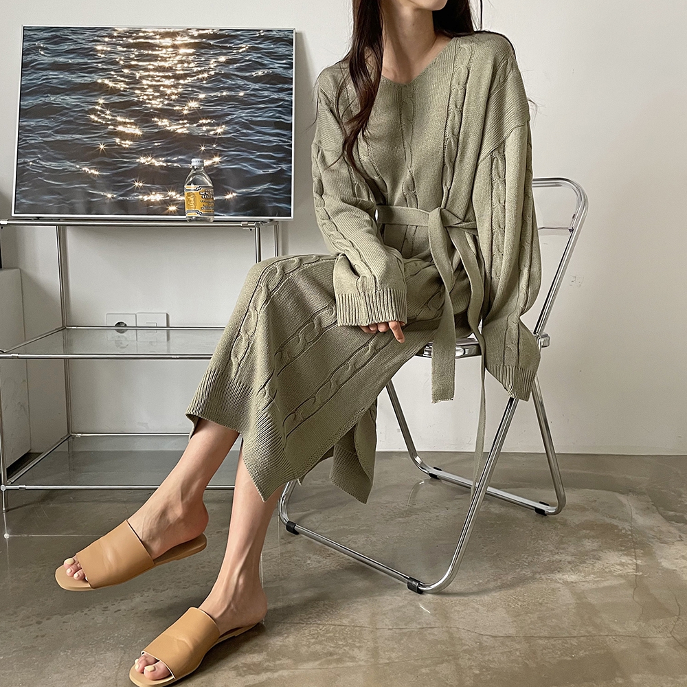 - 꽈배기 골지 벨트 롱원피스