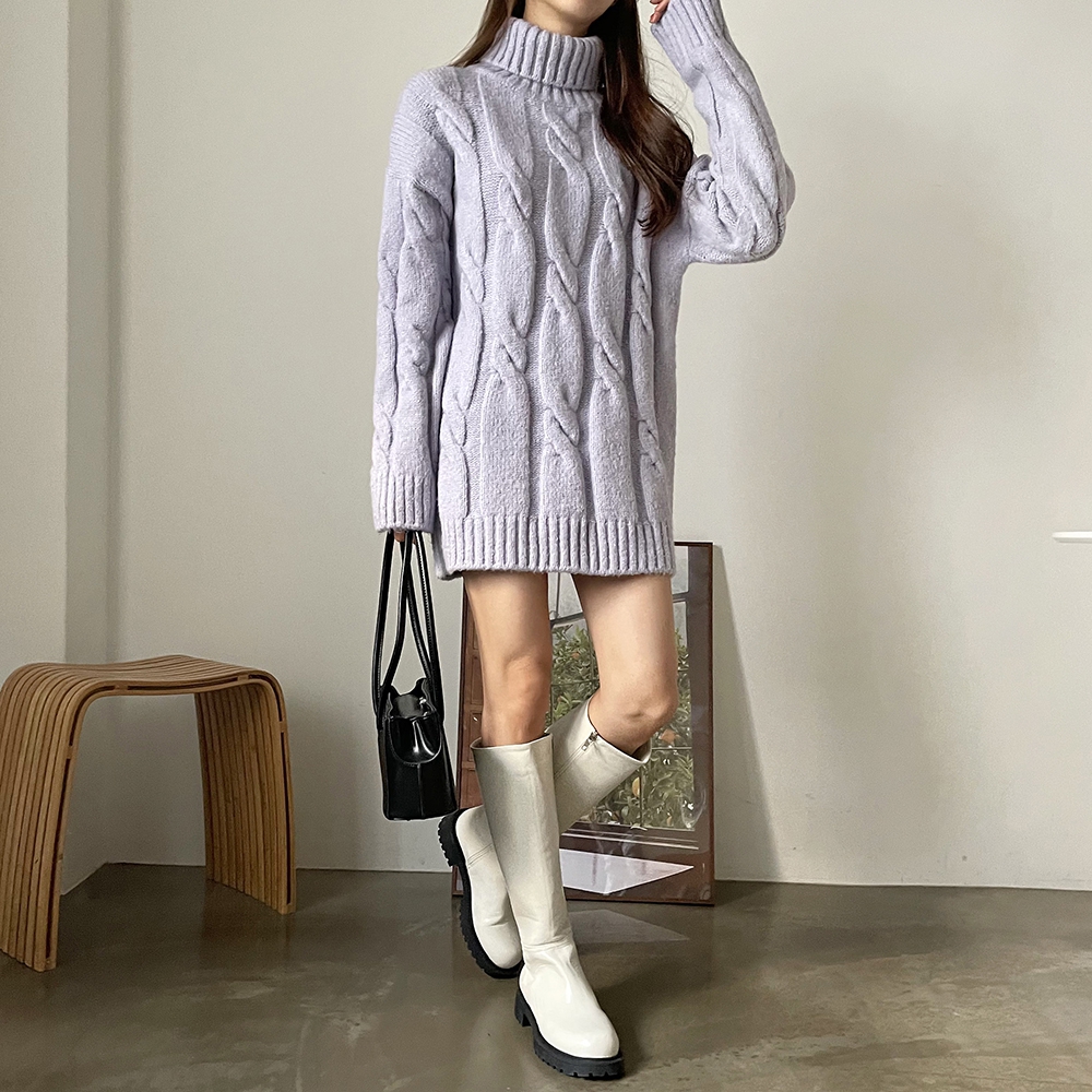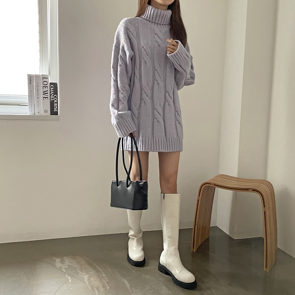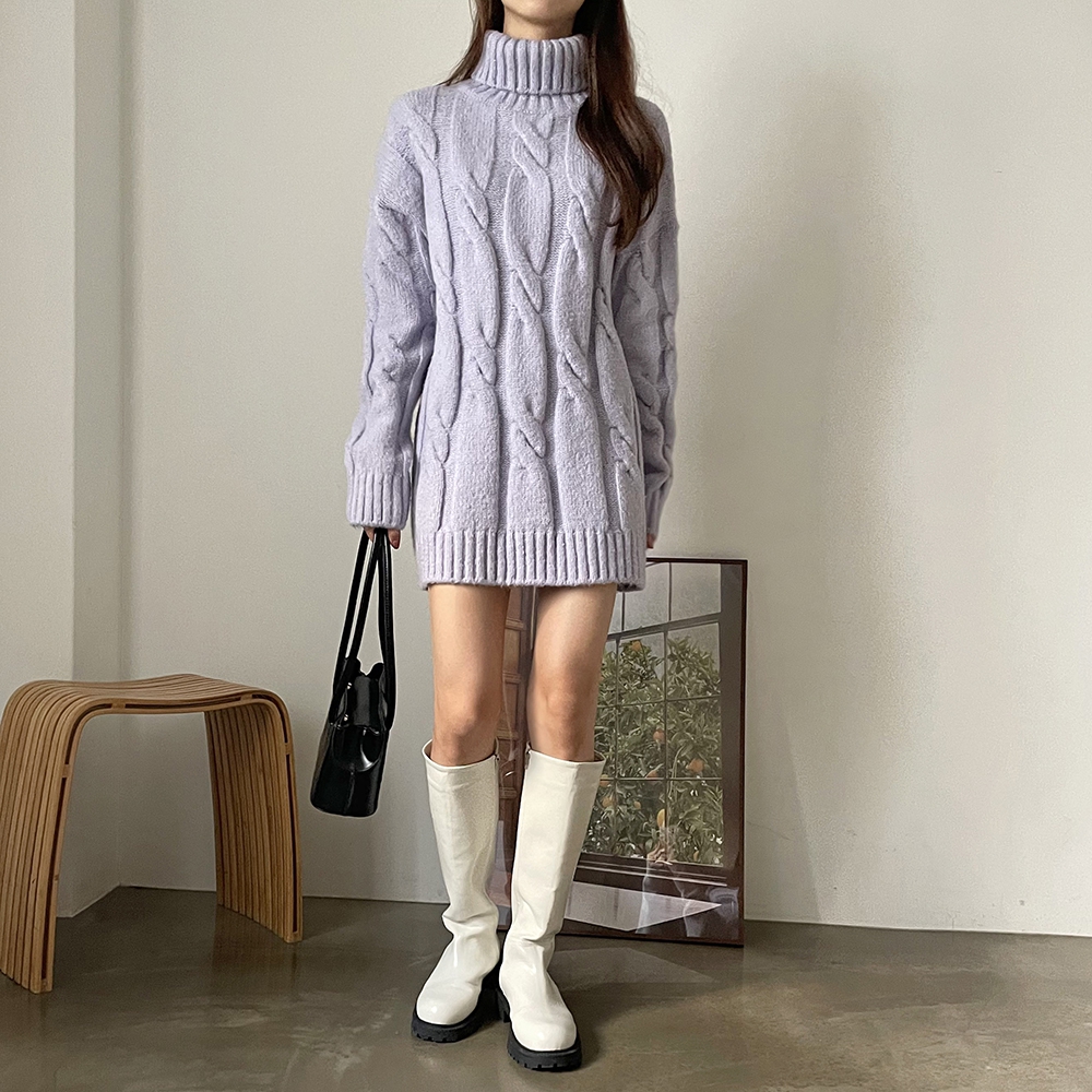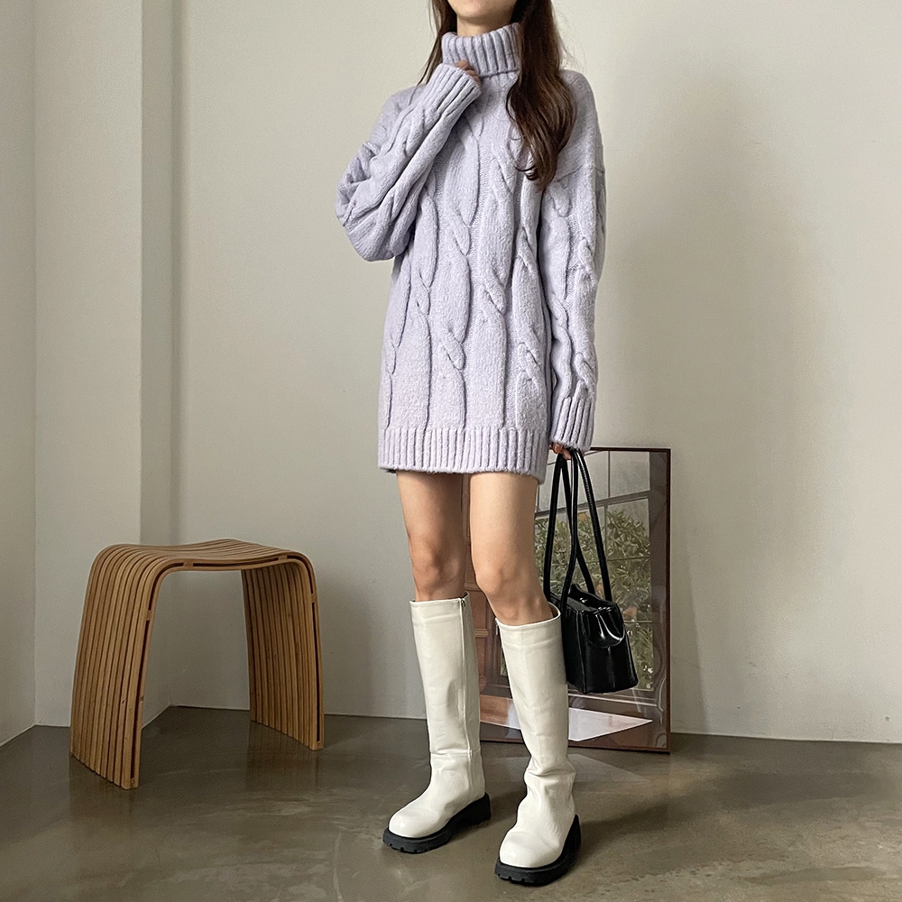 - 빅 꽈배기 터틀넥 미니 원피스