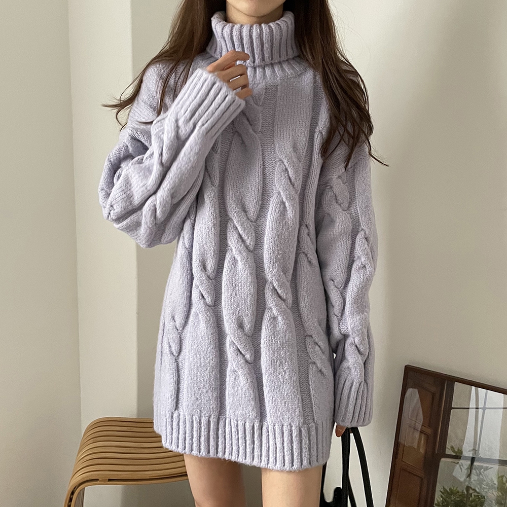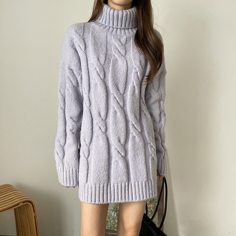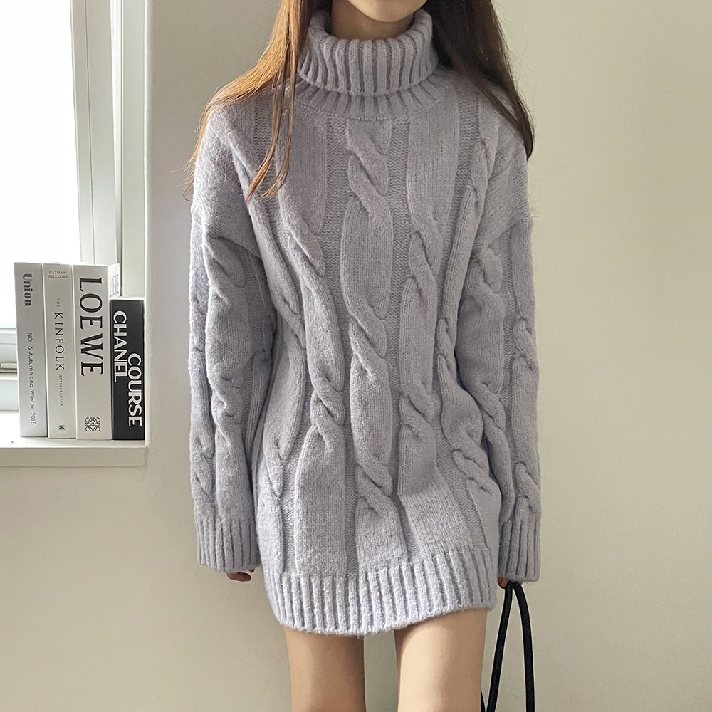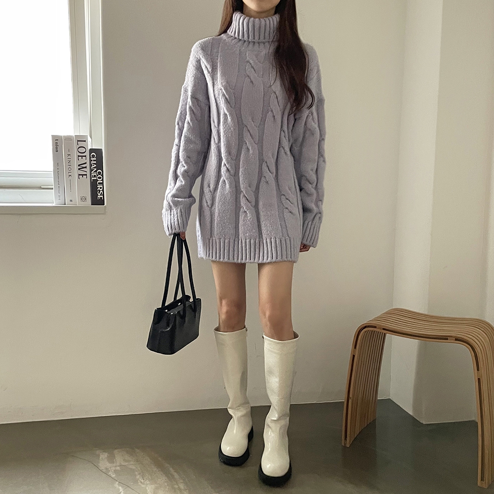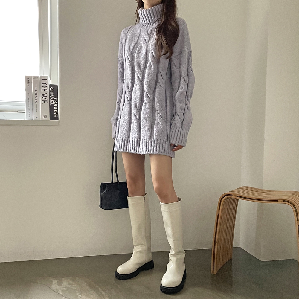 - 빅 꽈배기 터틀넥 미니 원피스