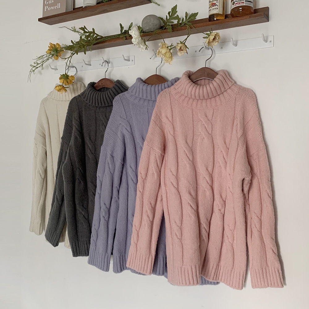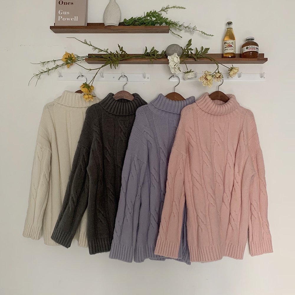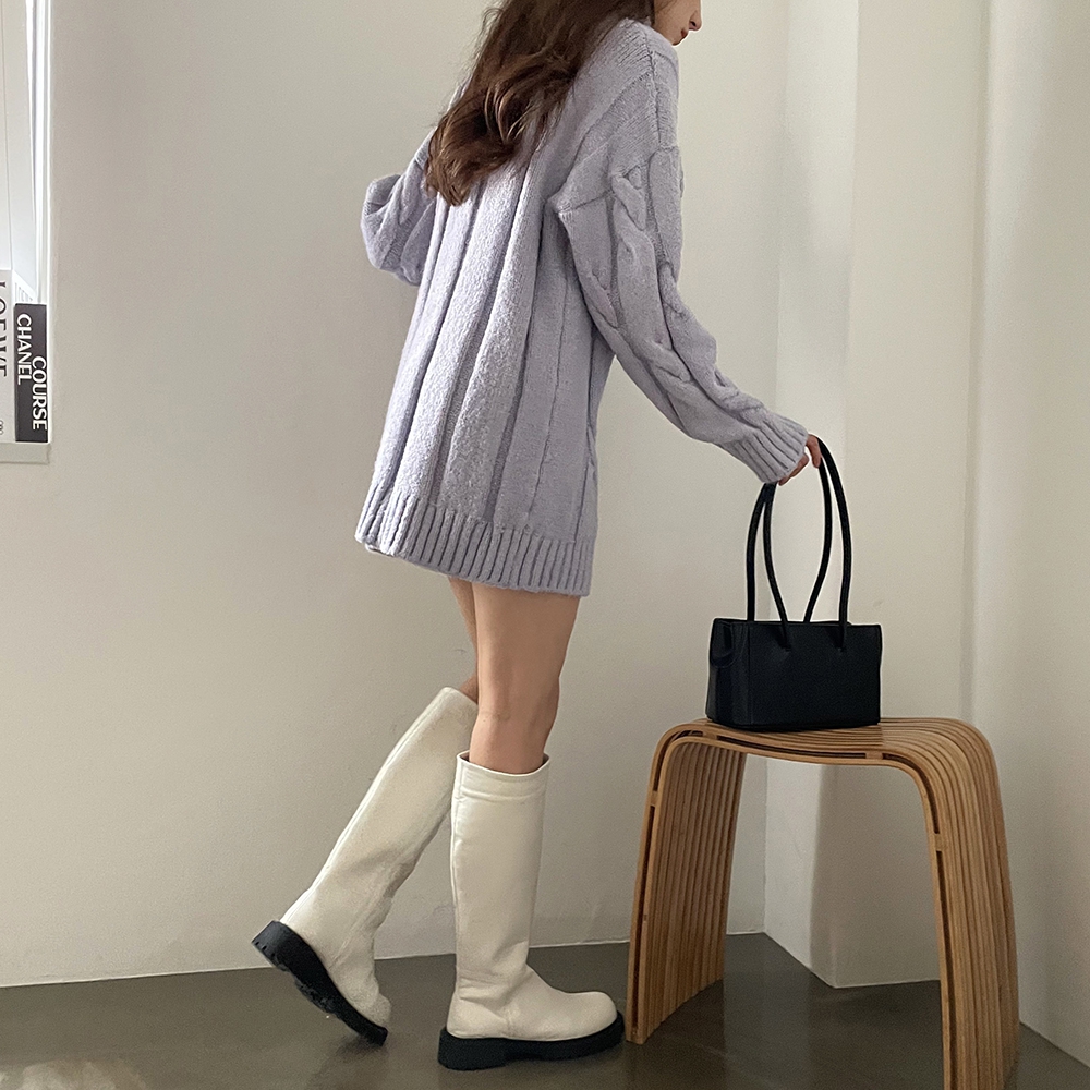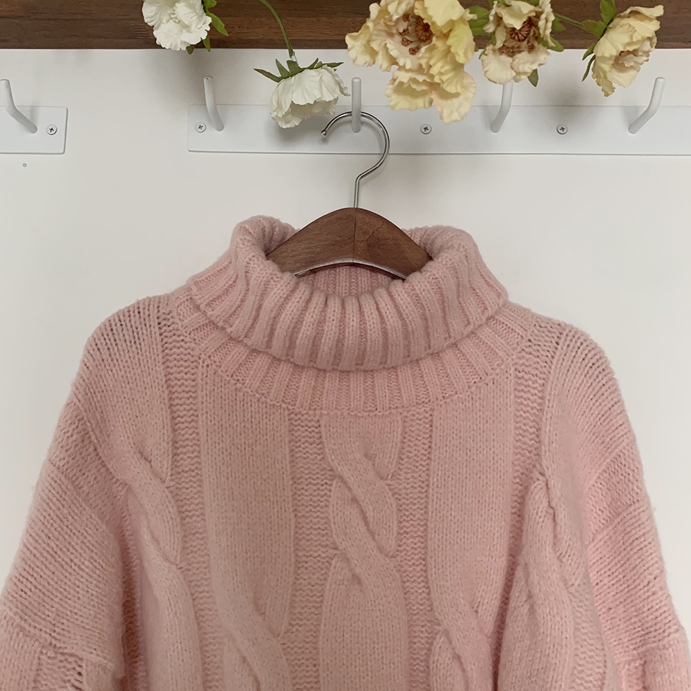 - 빅 꽈배기 터틀넥 미니 원피스