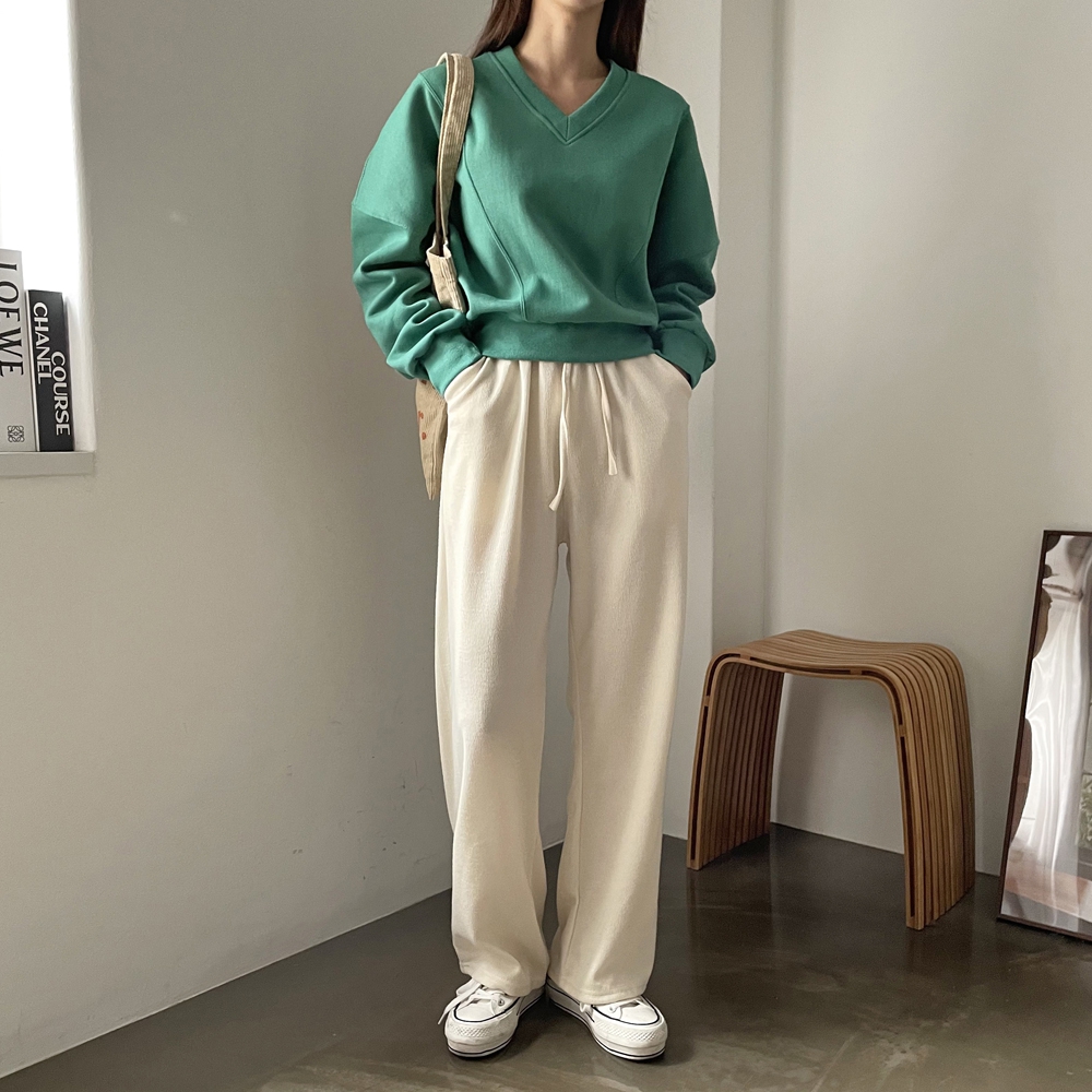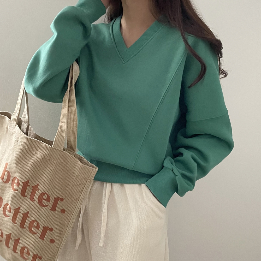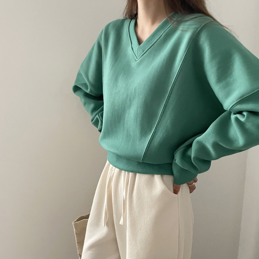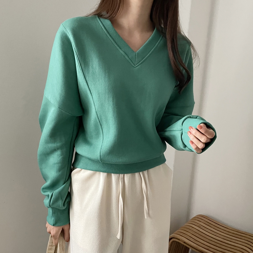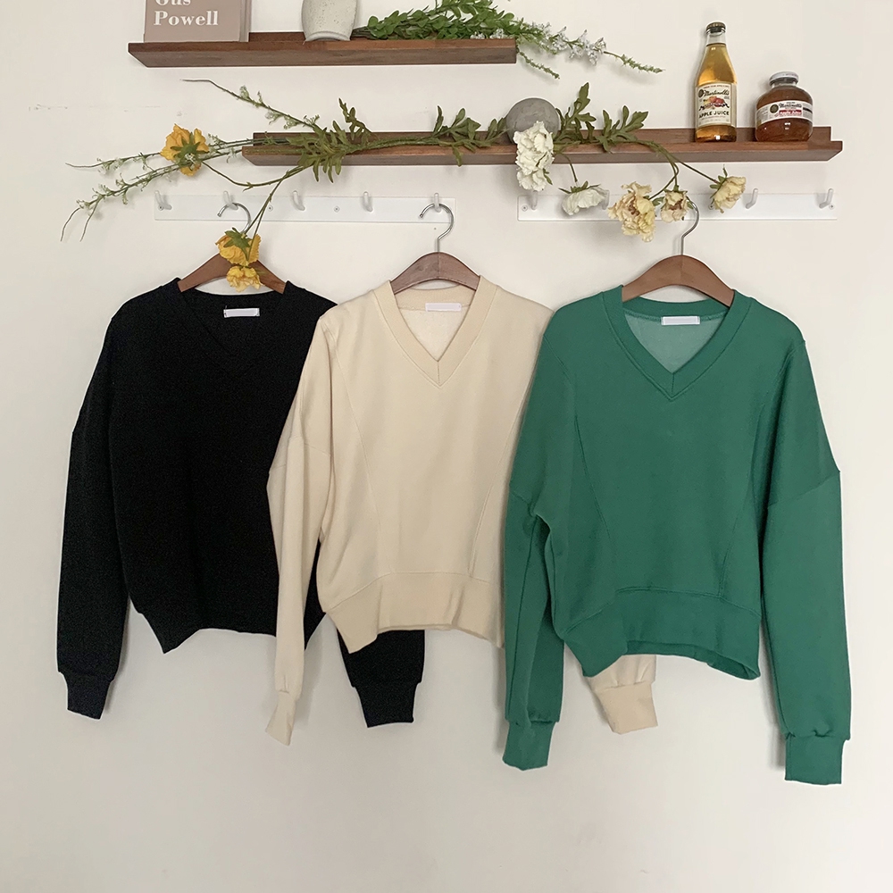 기모 시보리 브이넥 맨투맨
