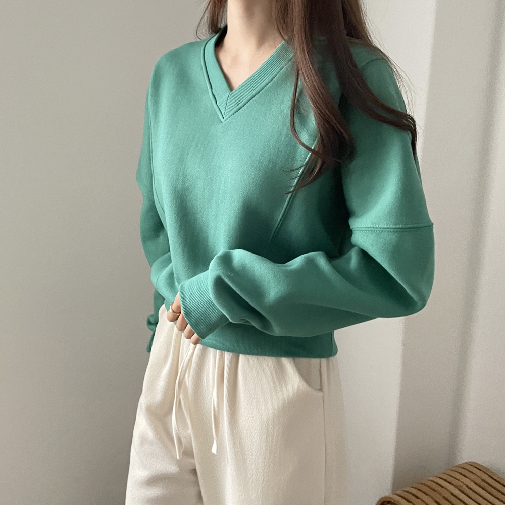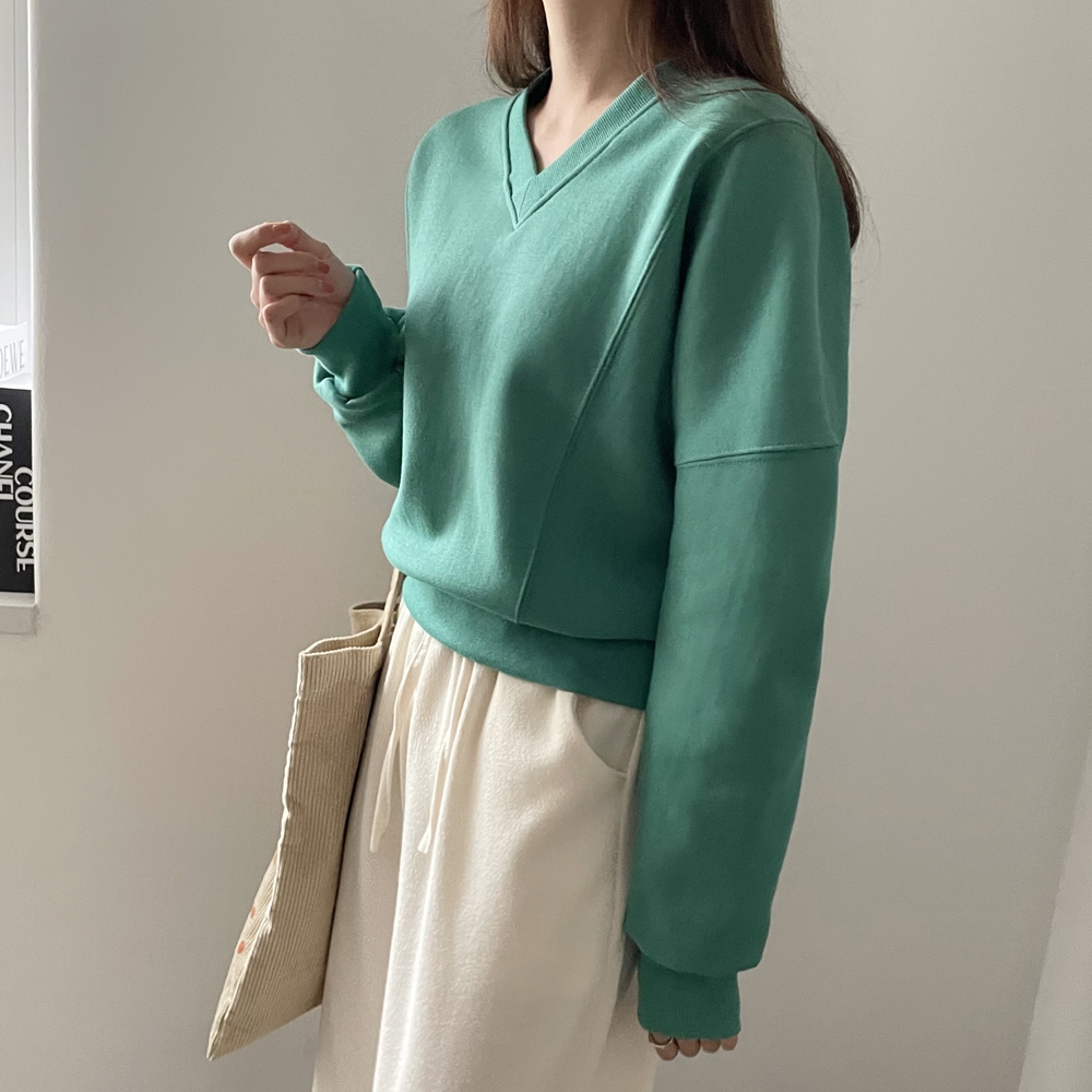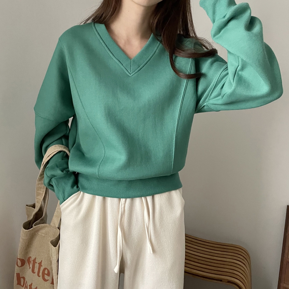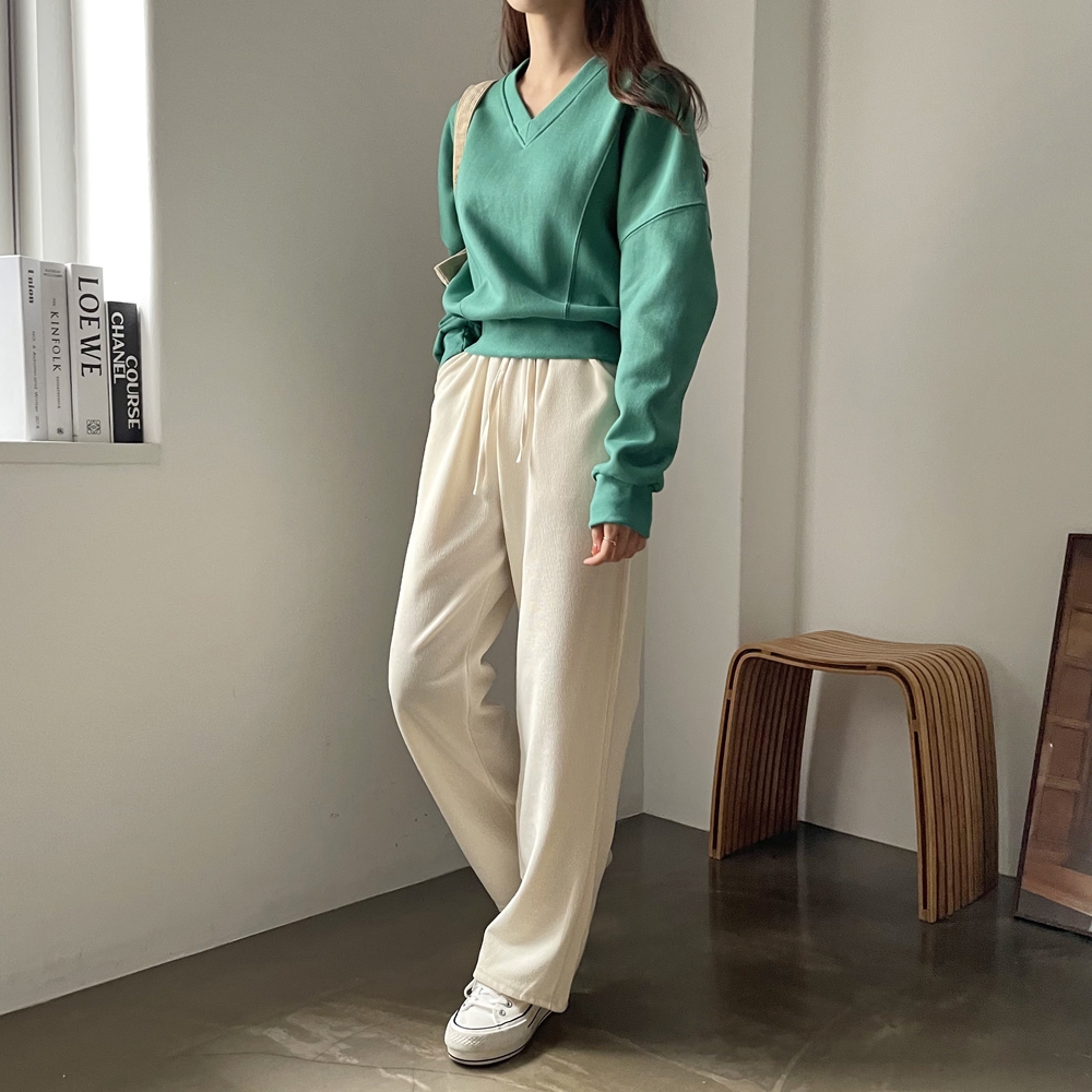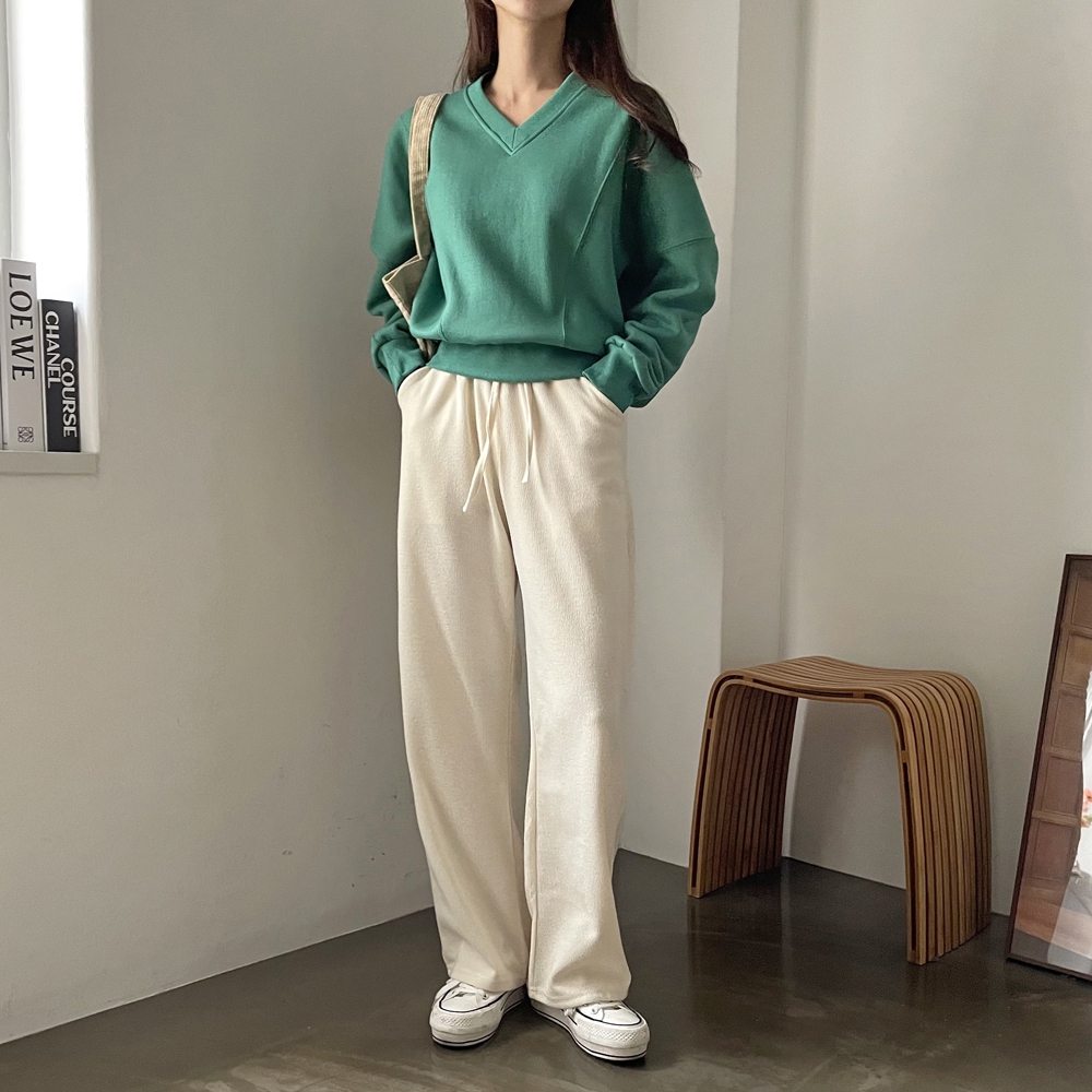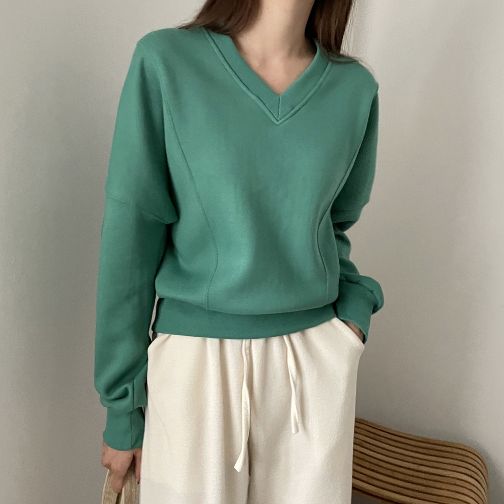 기모 시보리 브이넥 맨투맨
