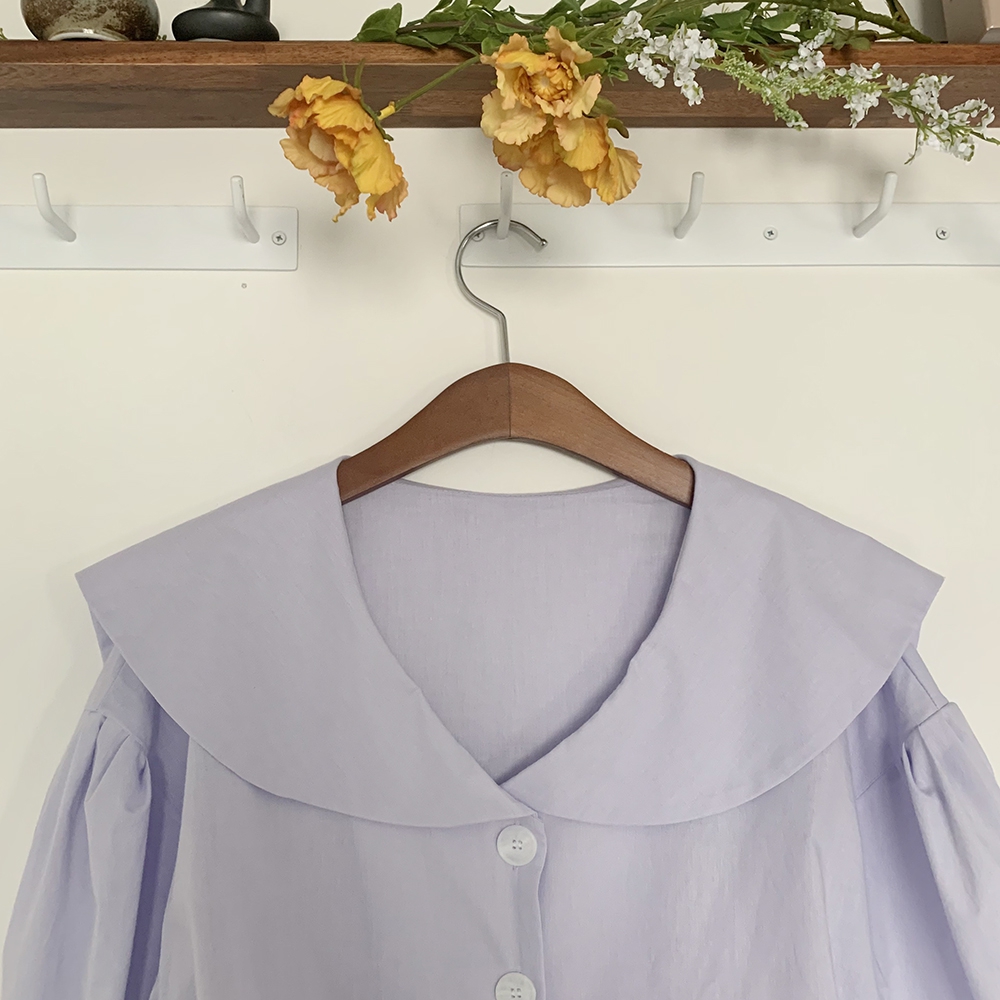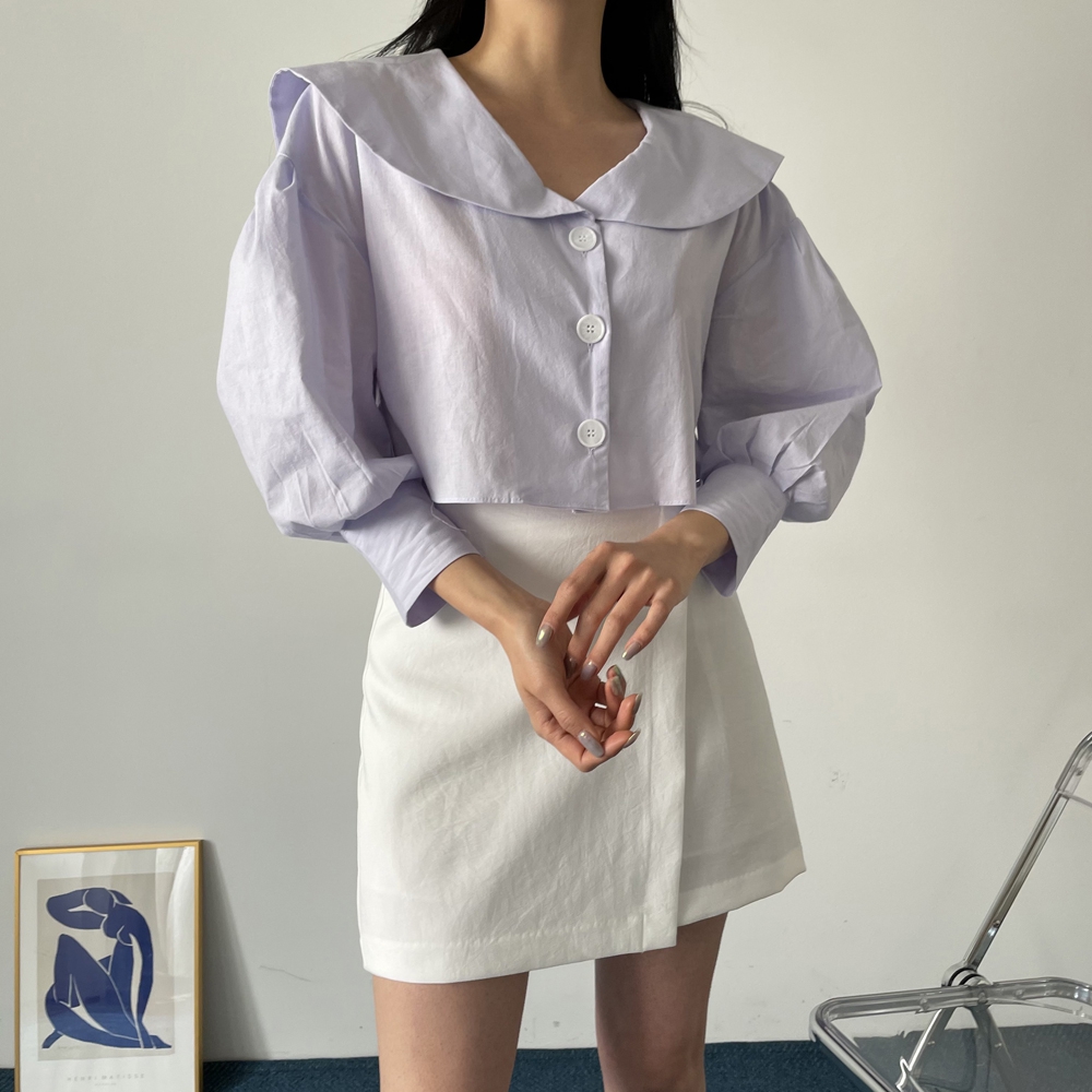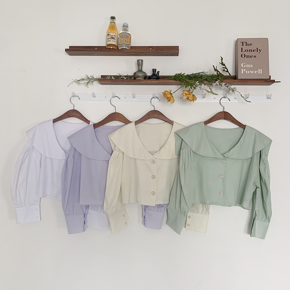 - 파스텔 세일러 빅카라 크롭 퍼프 블라우스