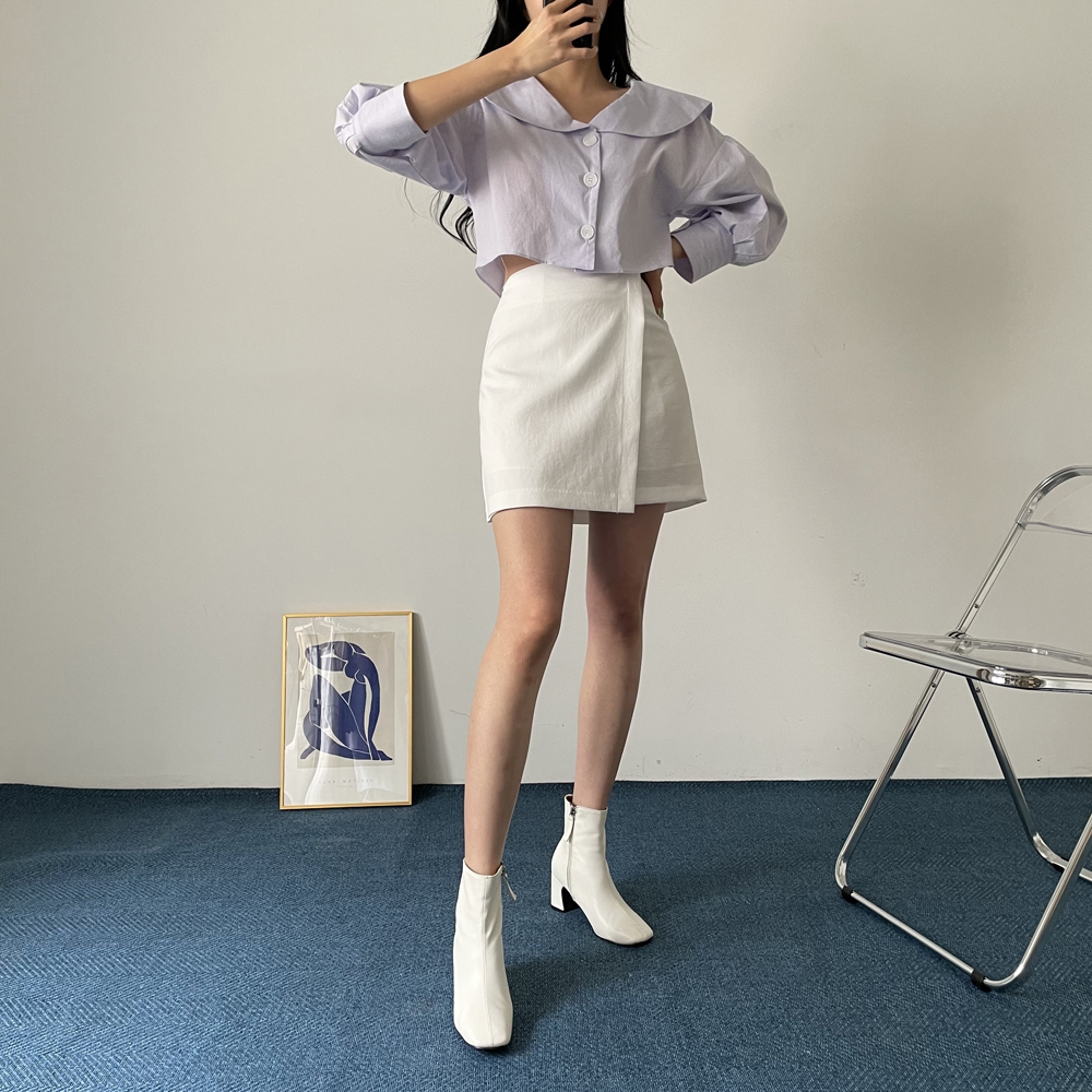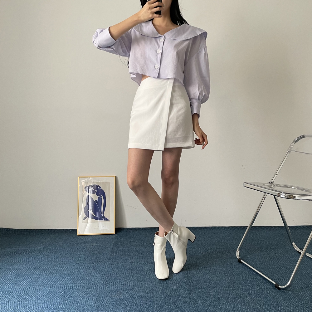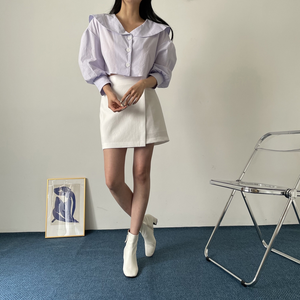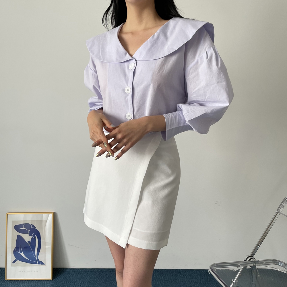 - 파스텔 세일러 빅카라 크롭 퍼프 블라우스