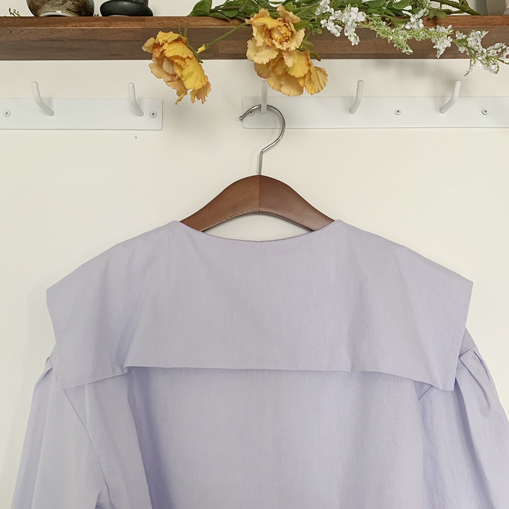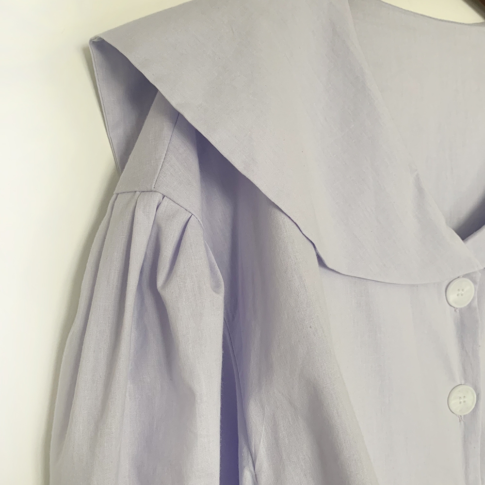 세일러 빅카라와 긴 커프스, 퍼프 소매, 귀여운 단추가