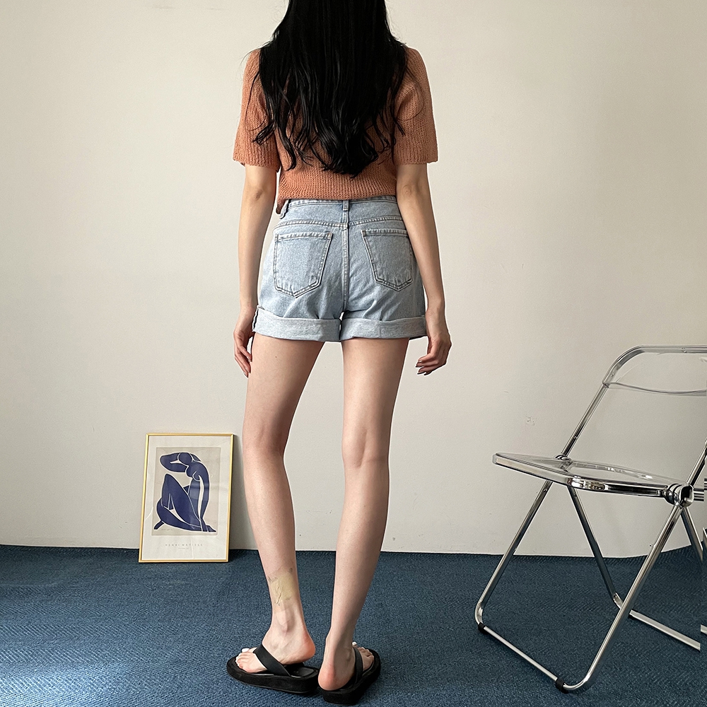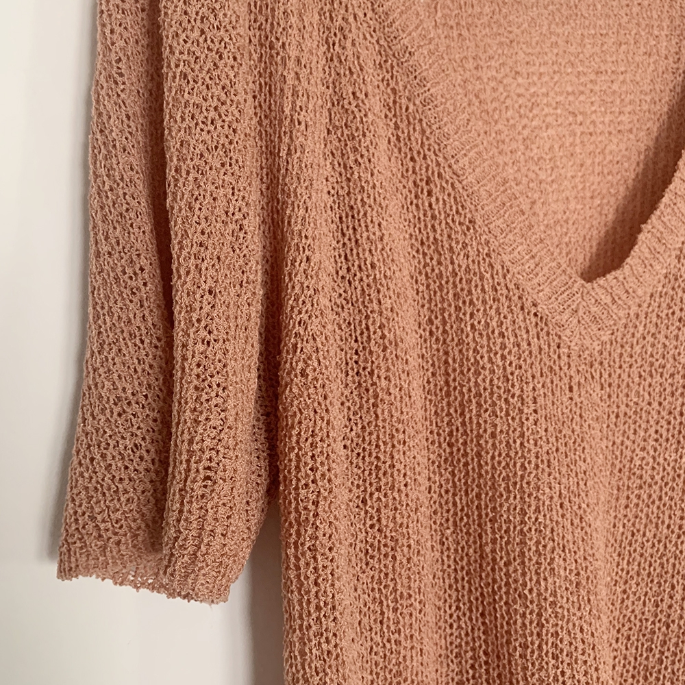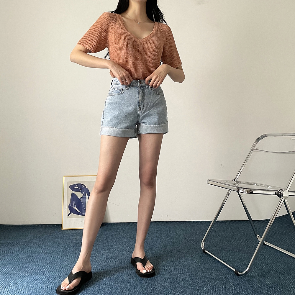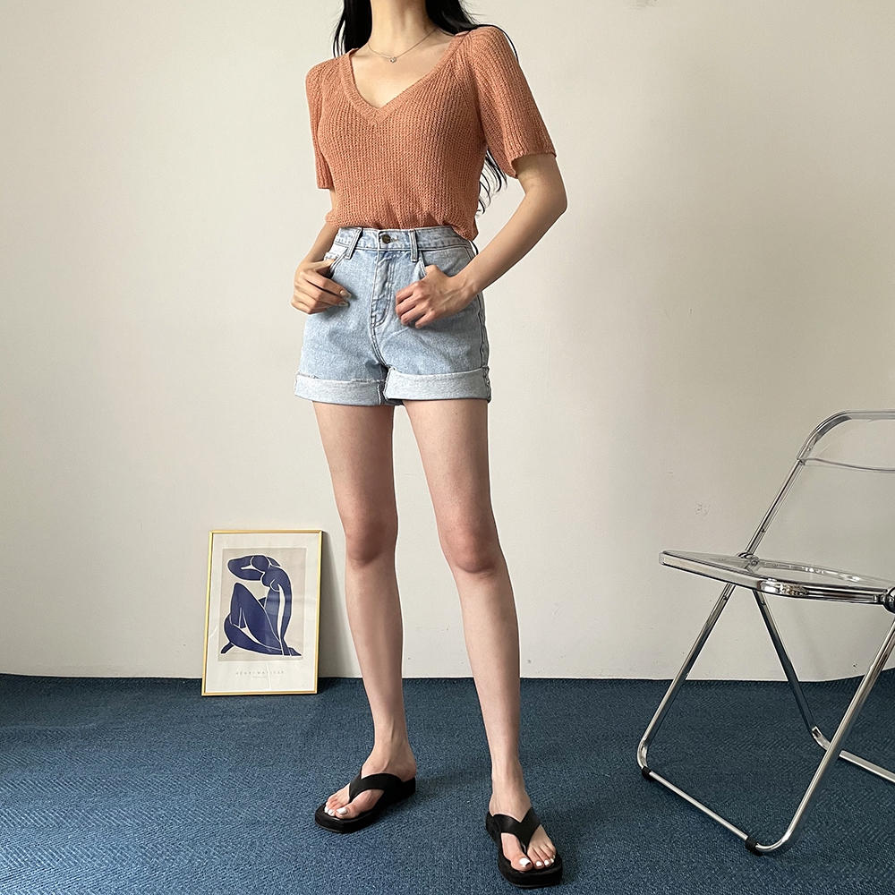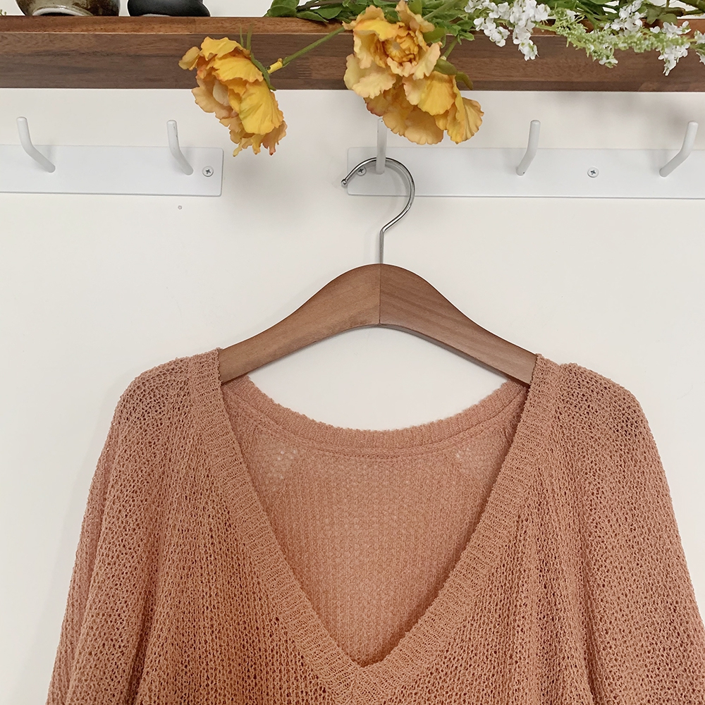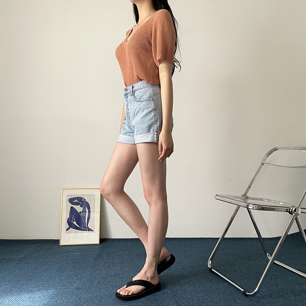 - 브이넥 부클 반팔 니트