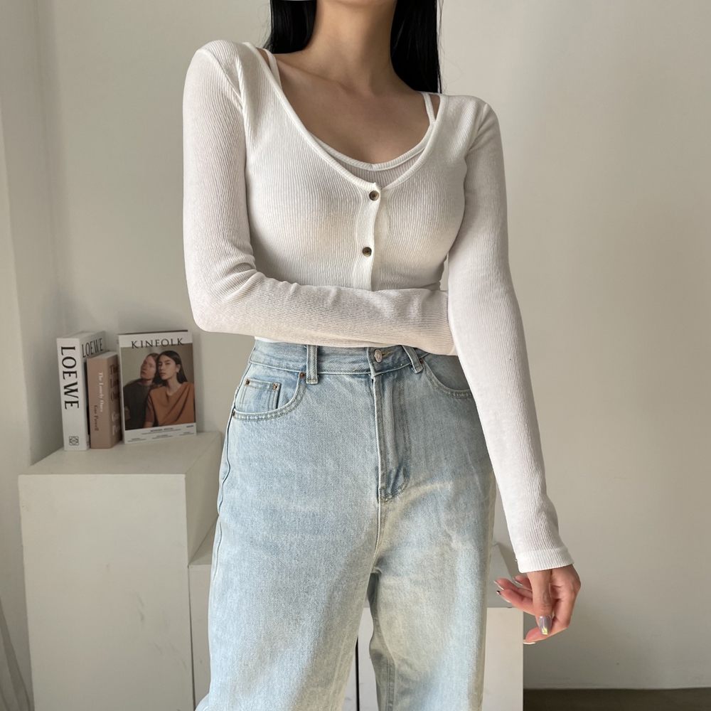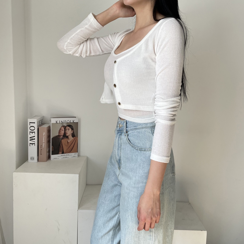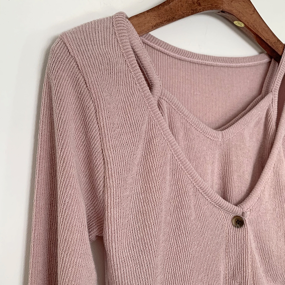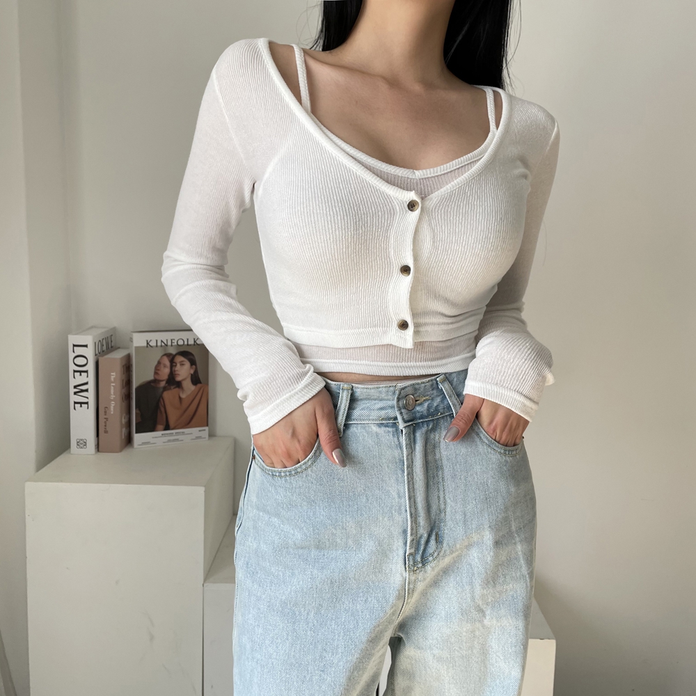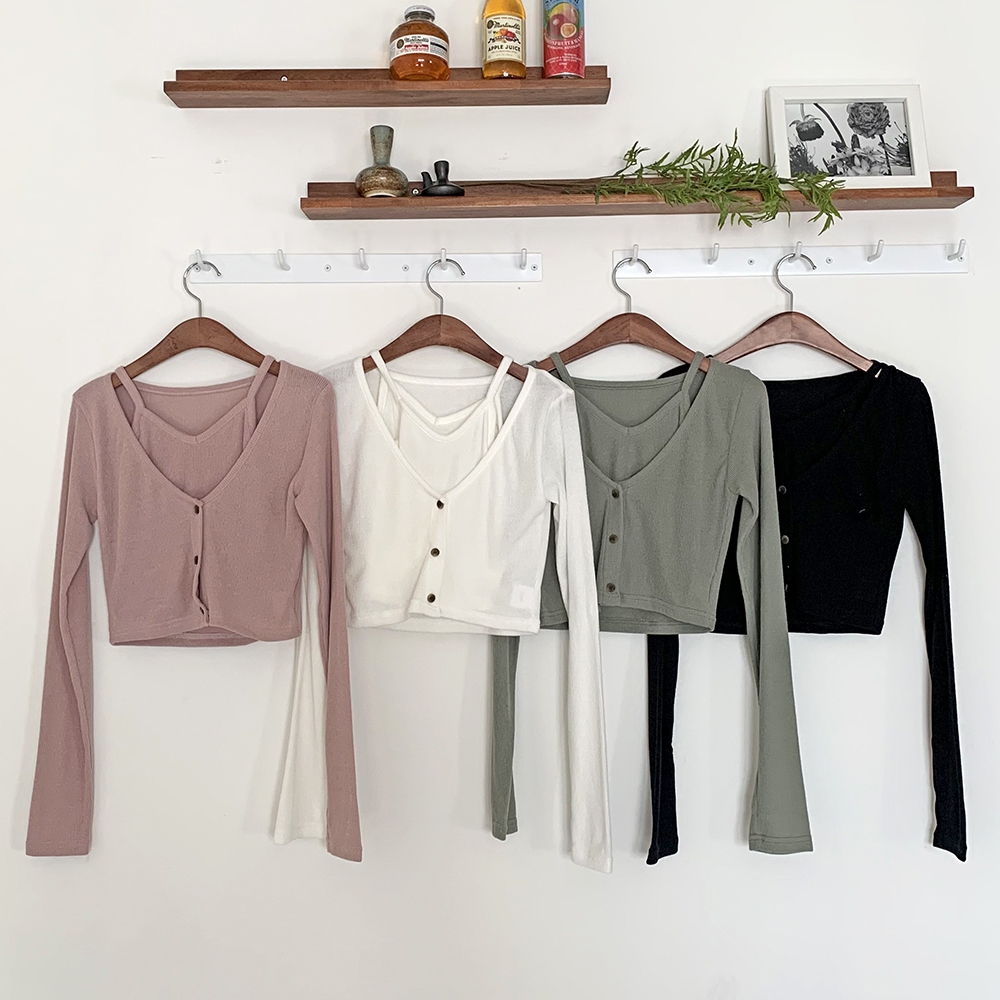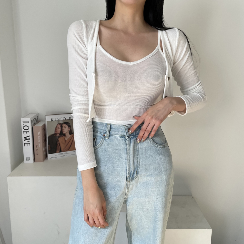 - 크롭 끈 나시 가디건 세트 간절기 숏 4컬러