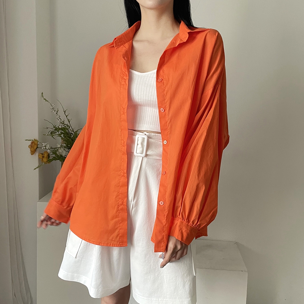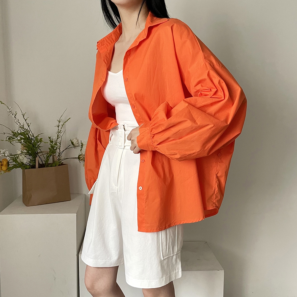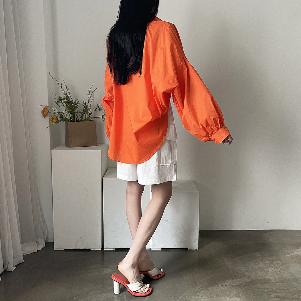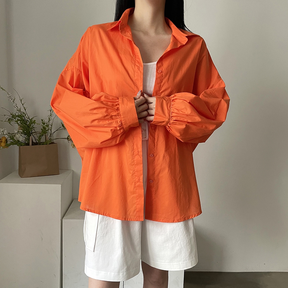 - 비비드컬러 루즈핏 벌룬소매 무지 남방