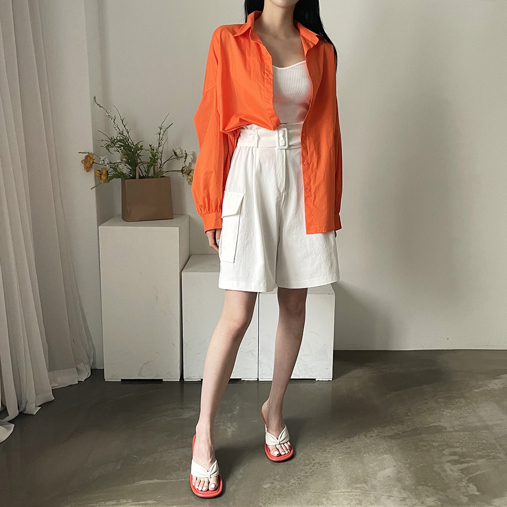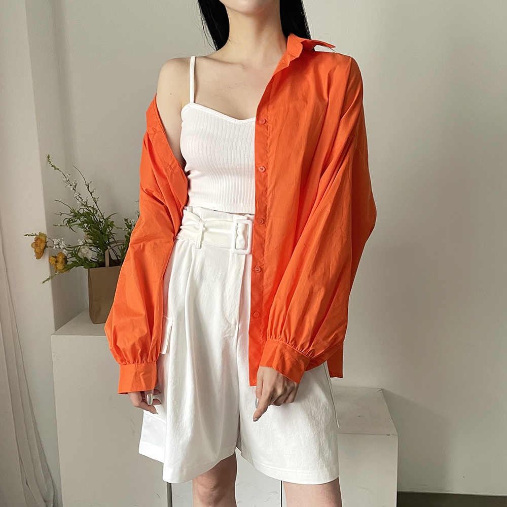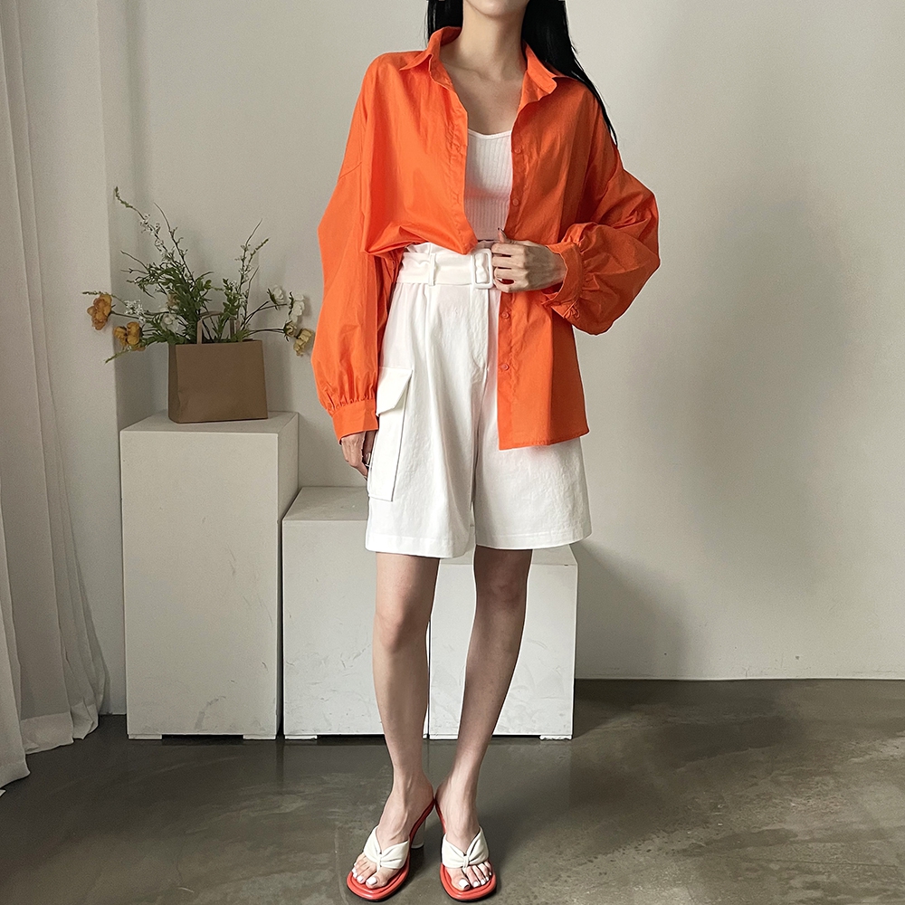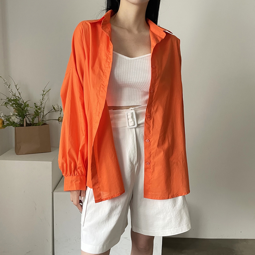 - 비비드컬러 루즈핏 벌룬소매 무지 남방