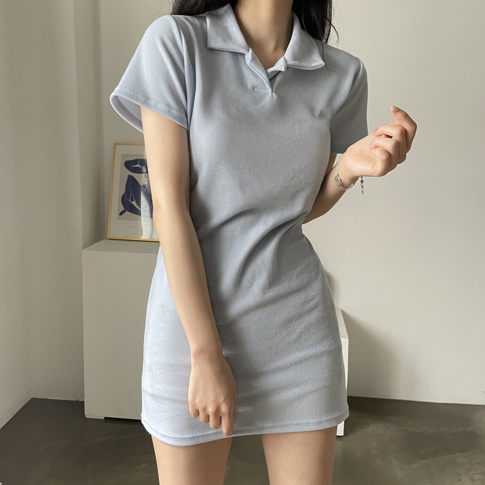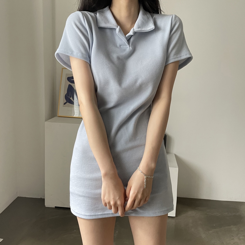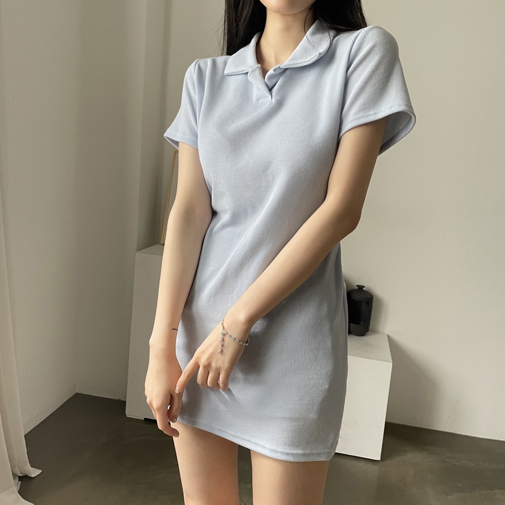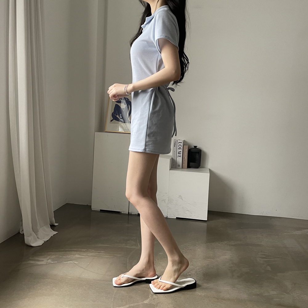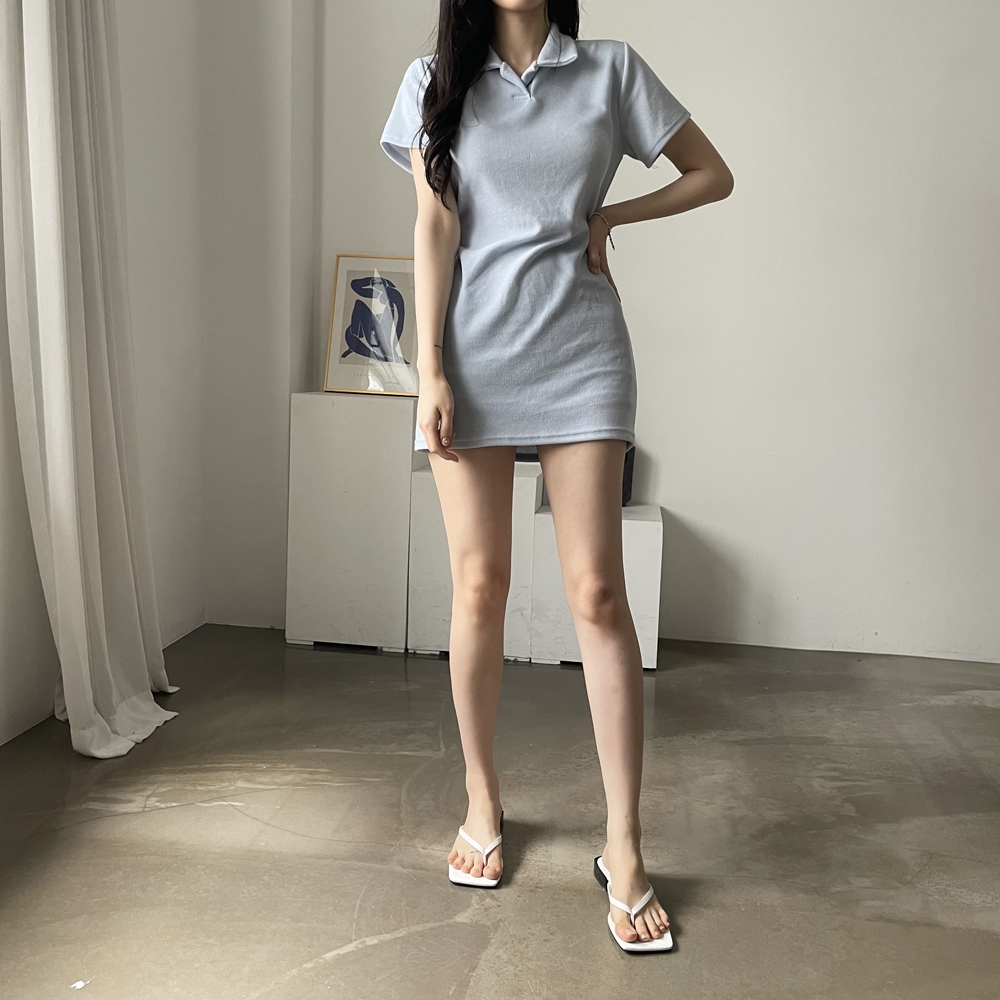 - 스트랩 카라 미니 원피스