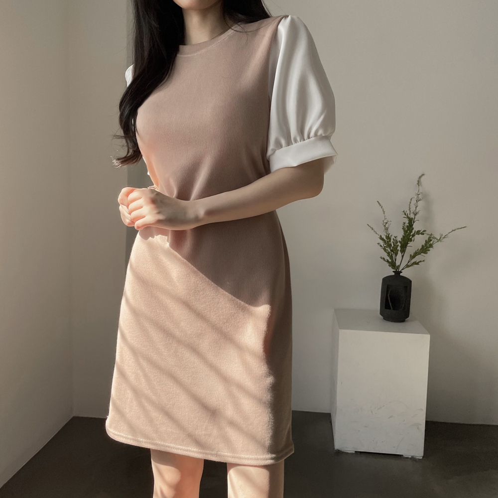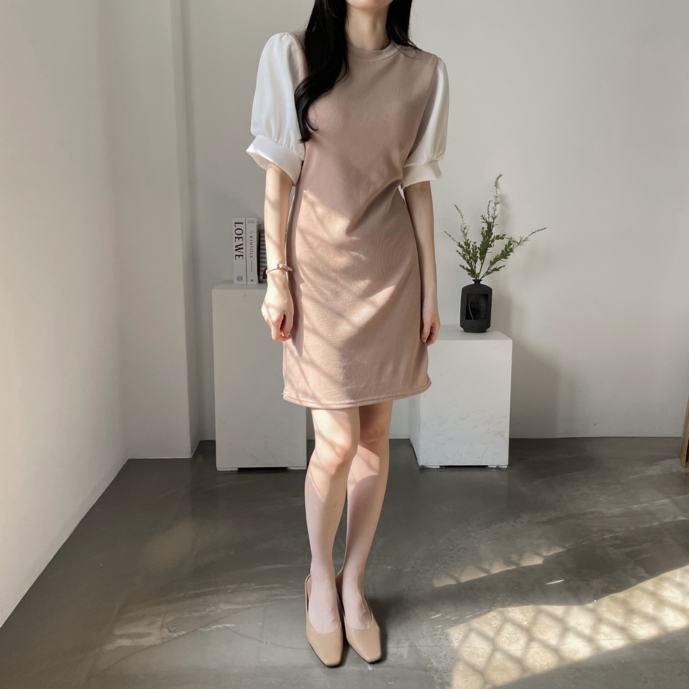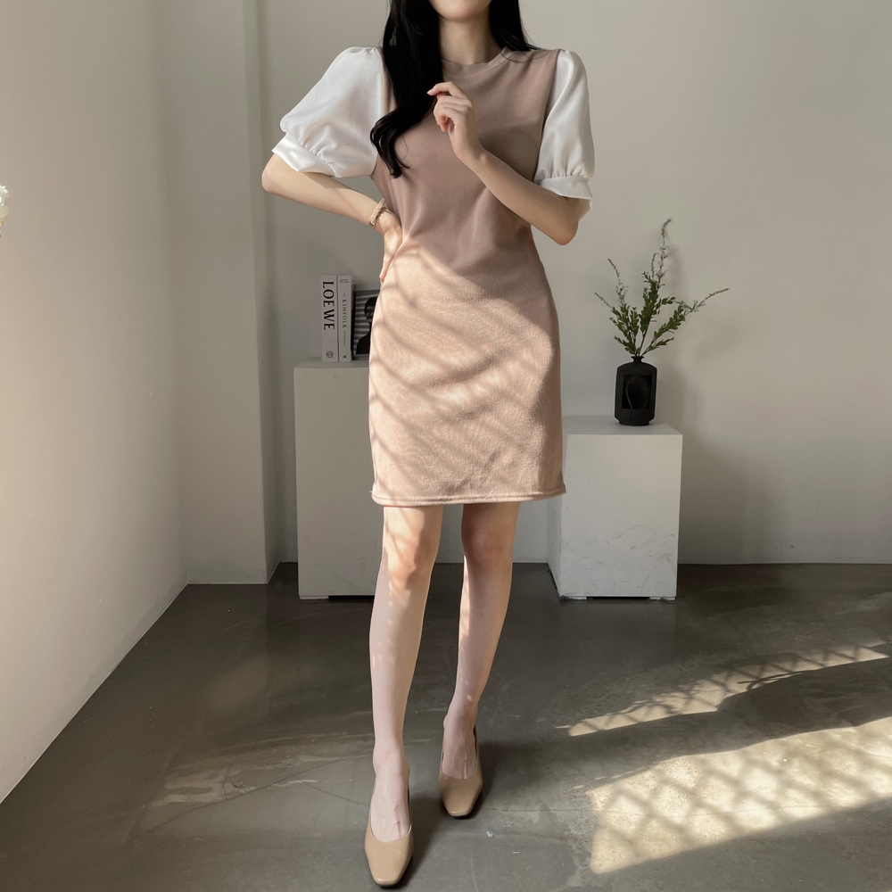 • [기획상품] 라운드 퍼프 리본 미니 원피스