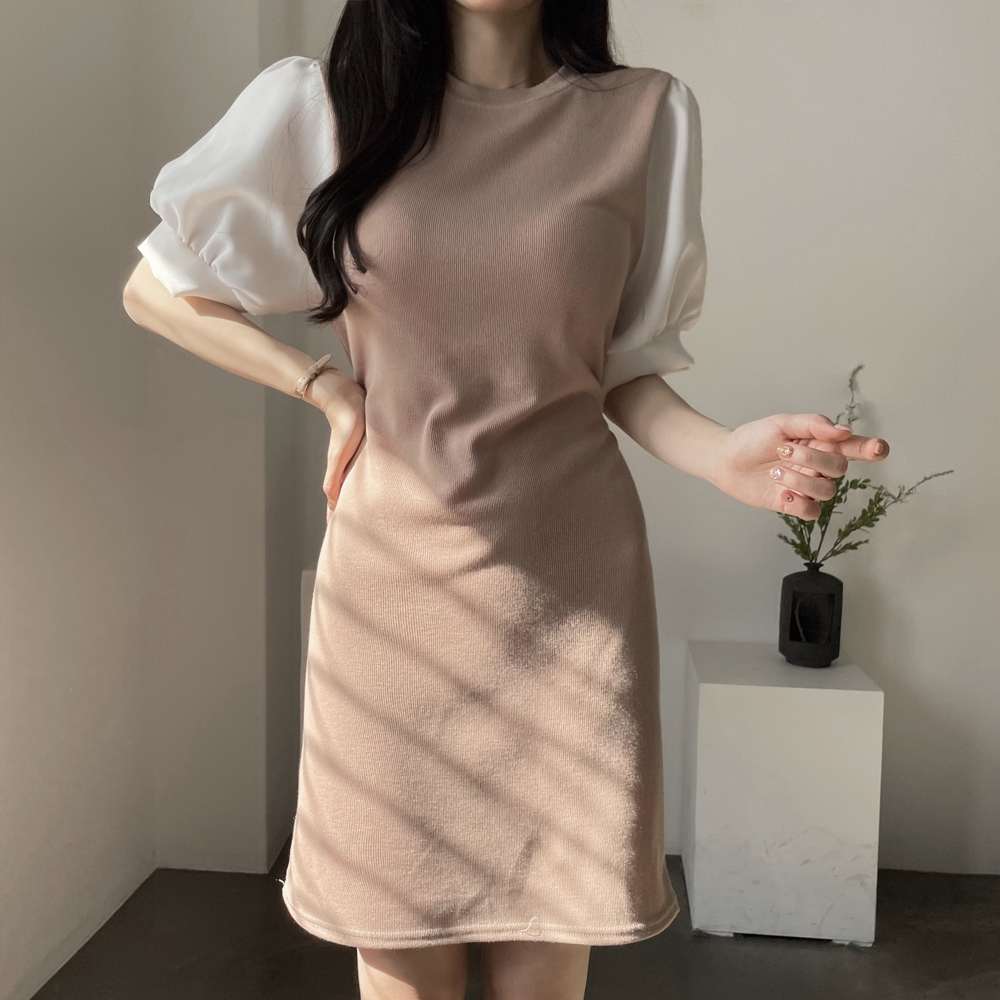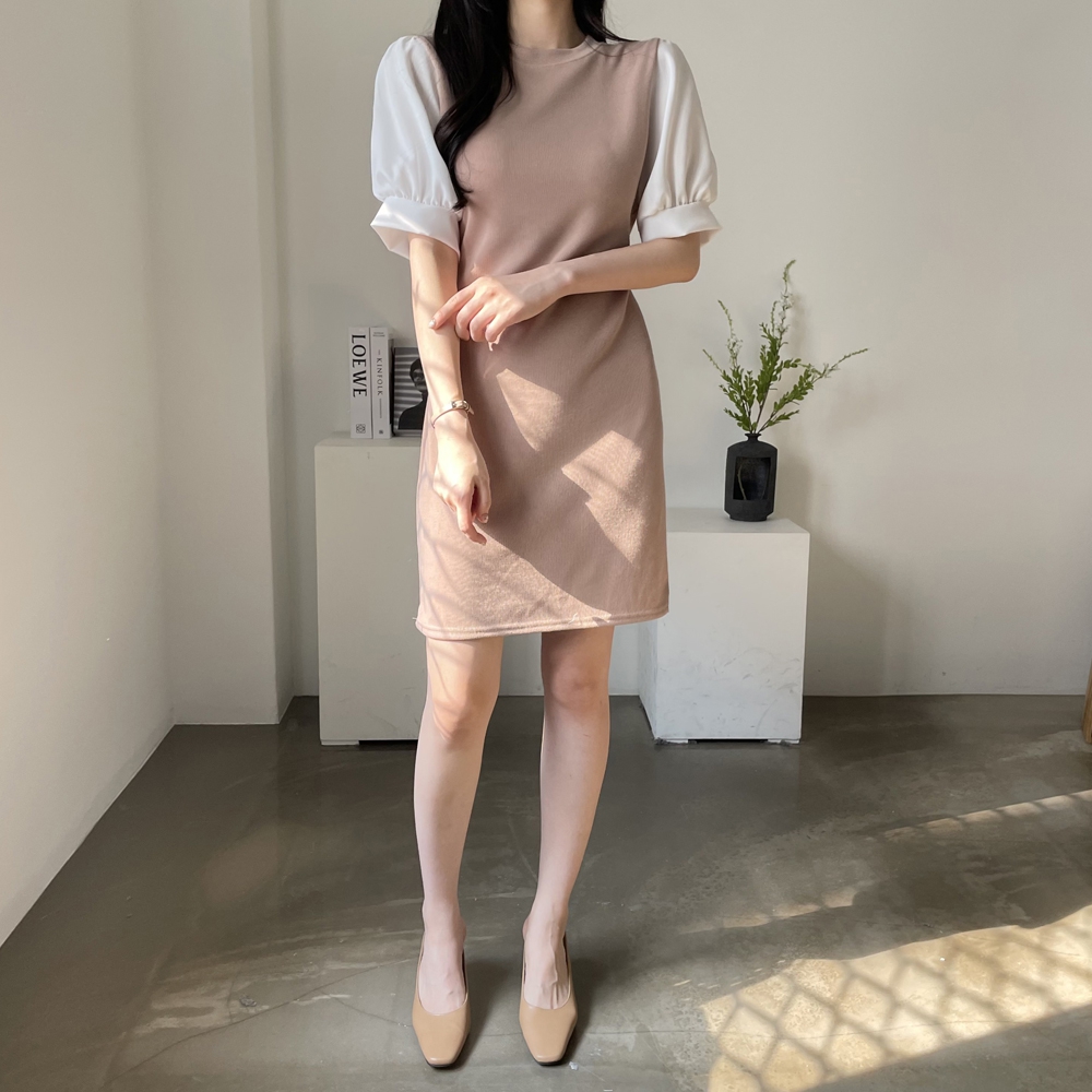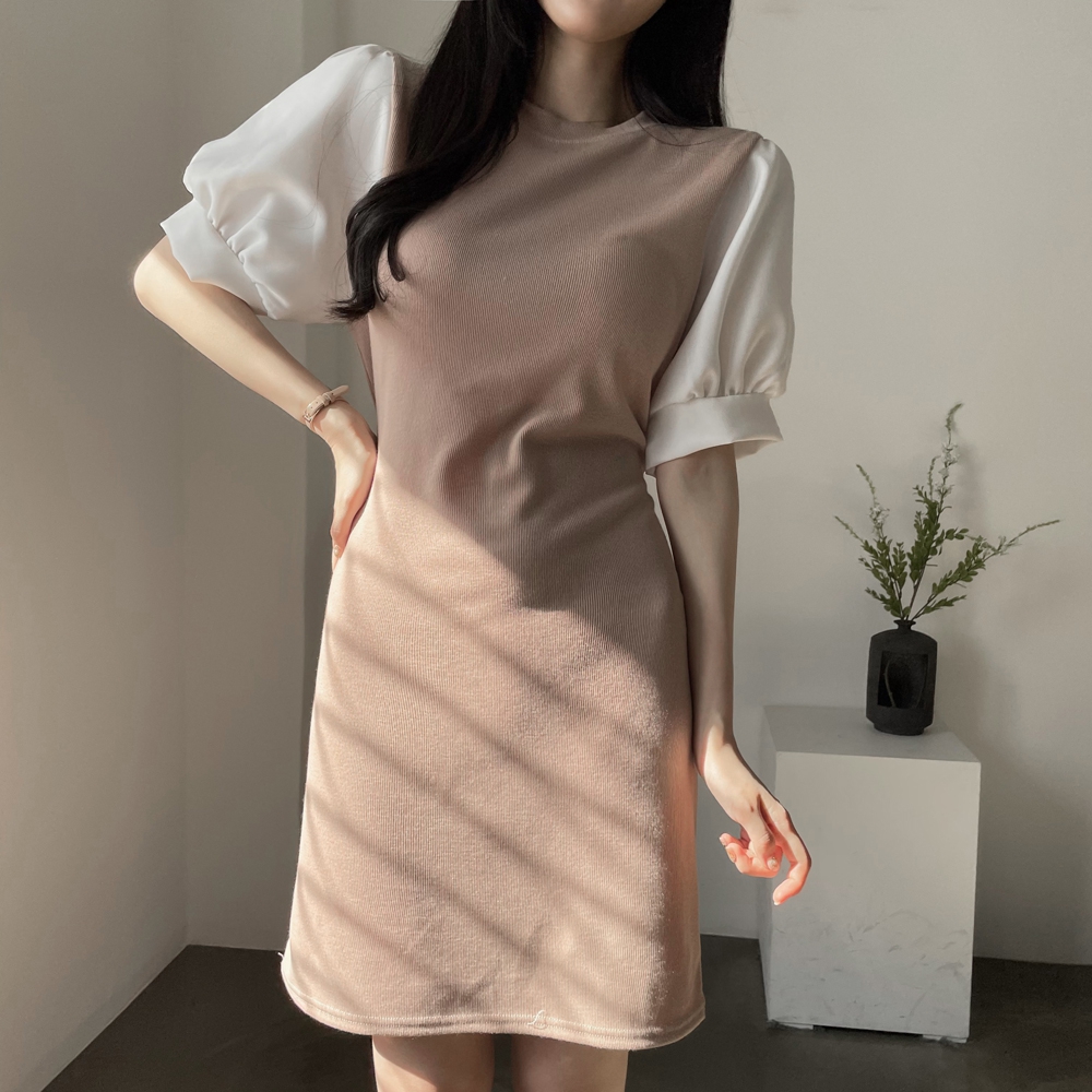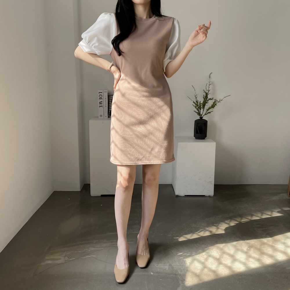 • [기획상품] 라운드 퍼프 리본 미니 원피스