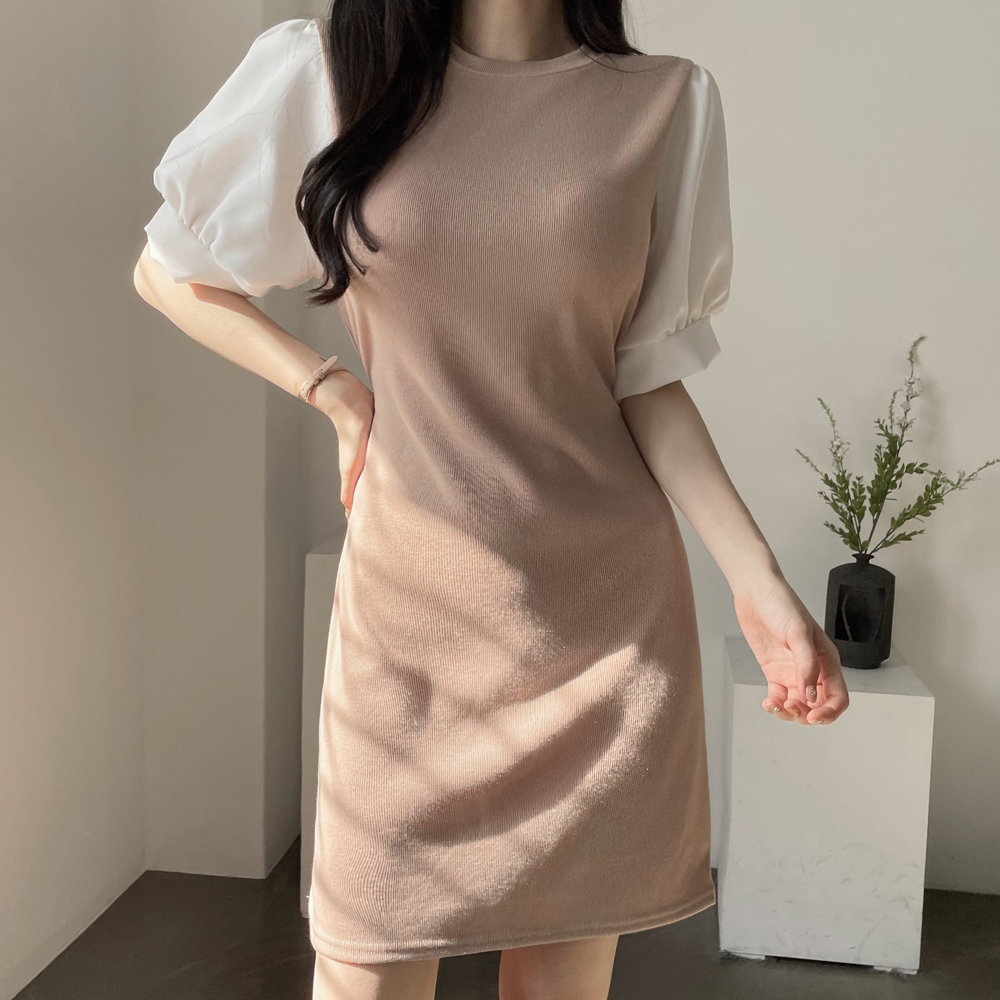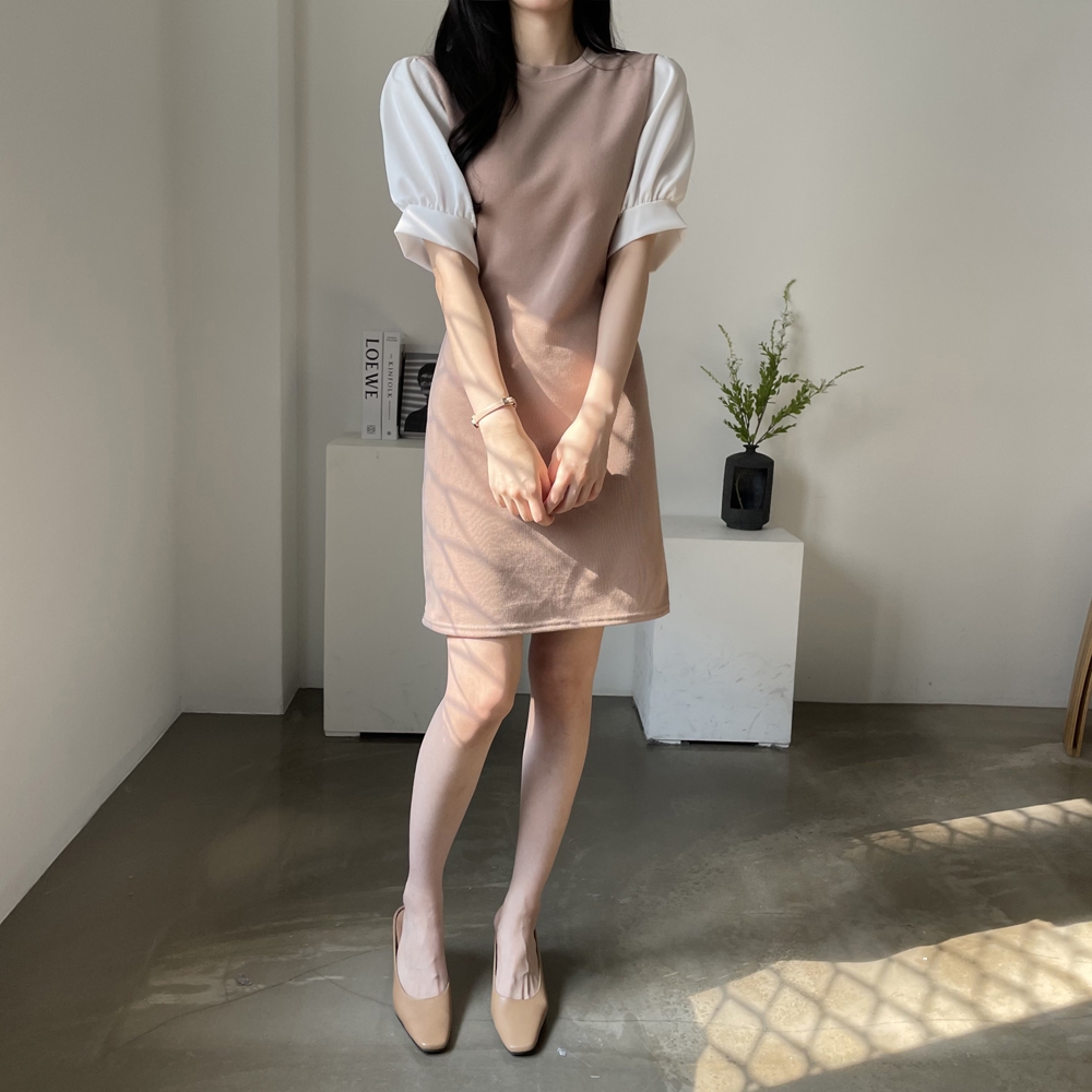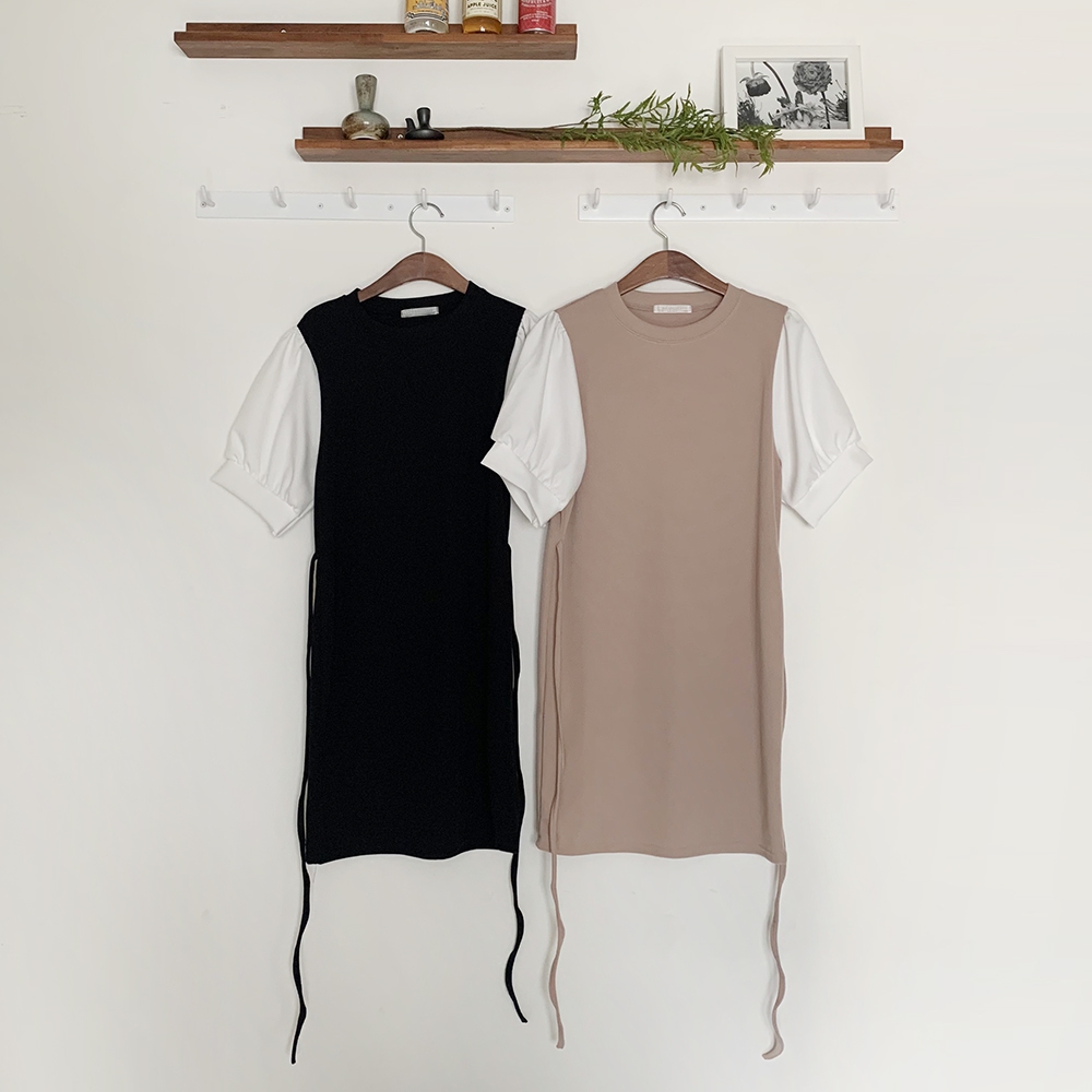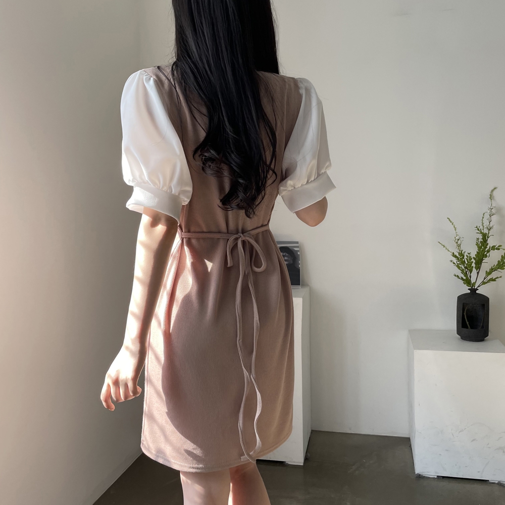 [기획상품] 라운드 퍼프 리본 미니 원피스