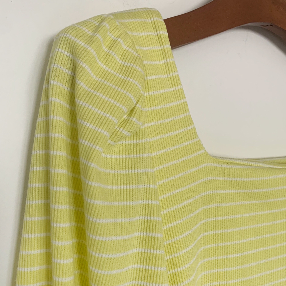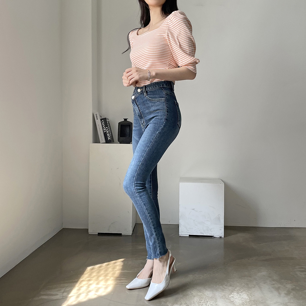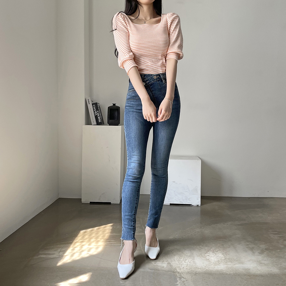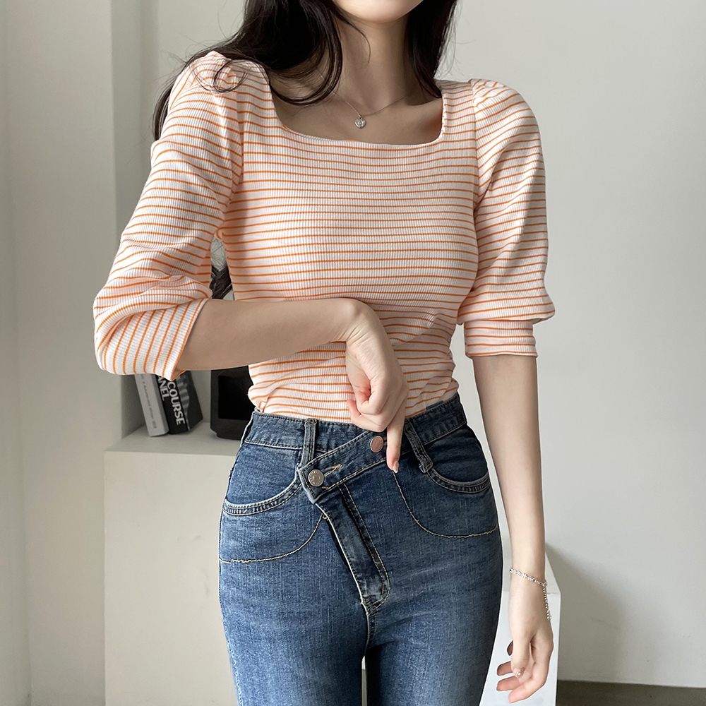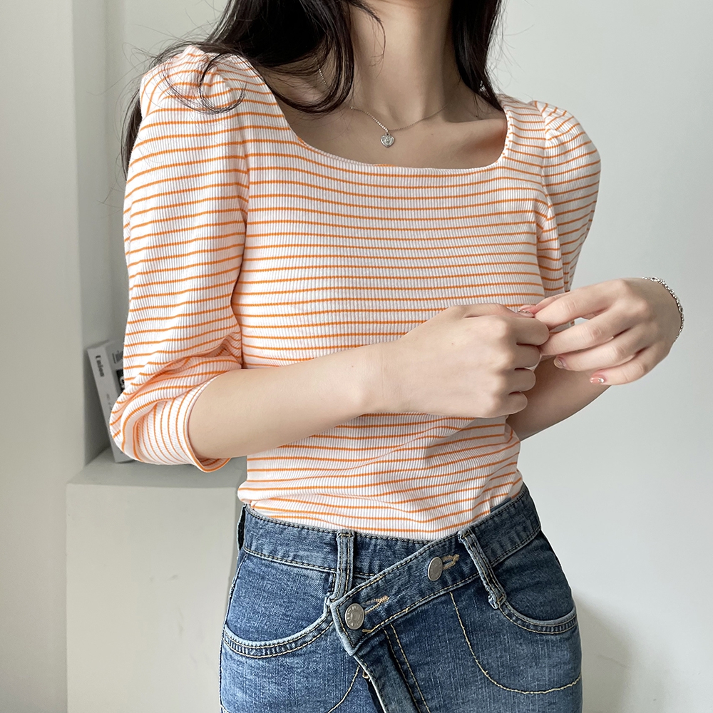 - 스트라이프 스퀘어 골지 티셔츠
