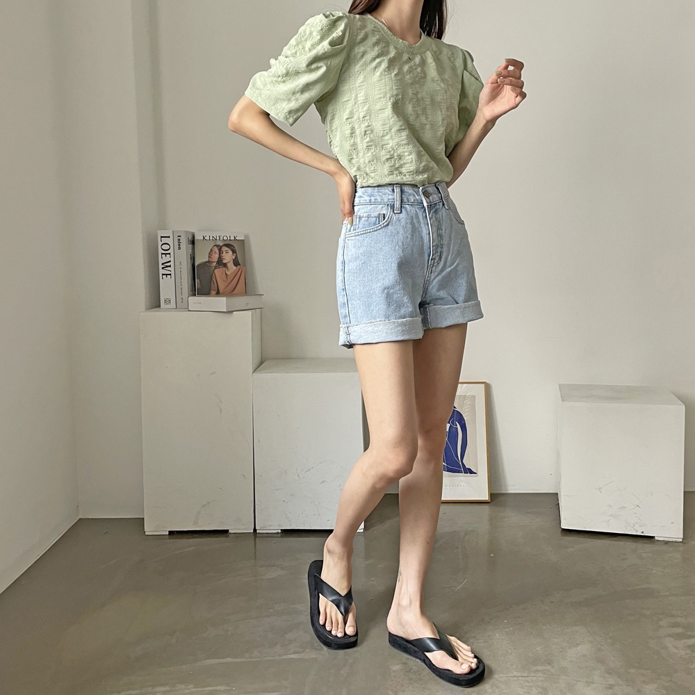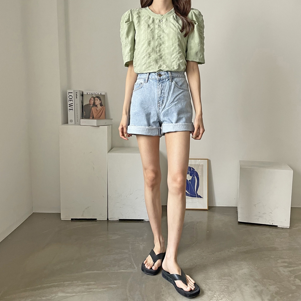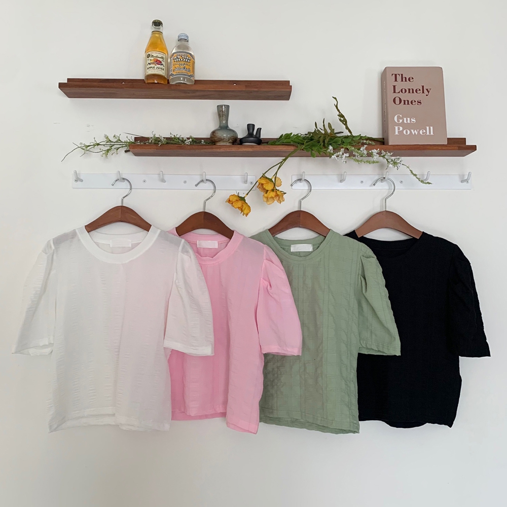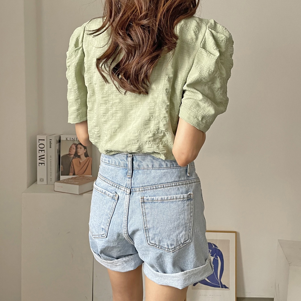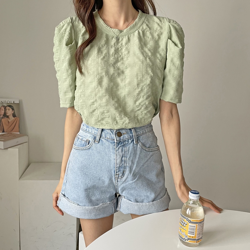 - 라운드 셔링 퍼프 반팔 블라우스