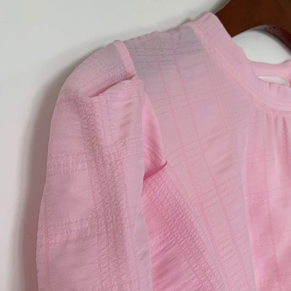소매부분의 퍼프와 셔링 디테일로