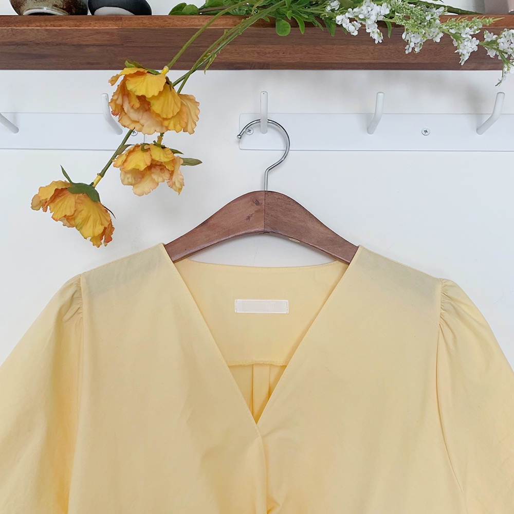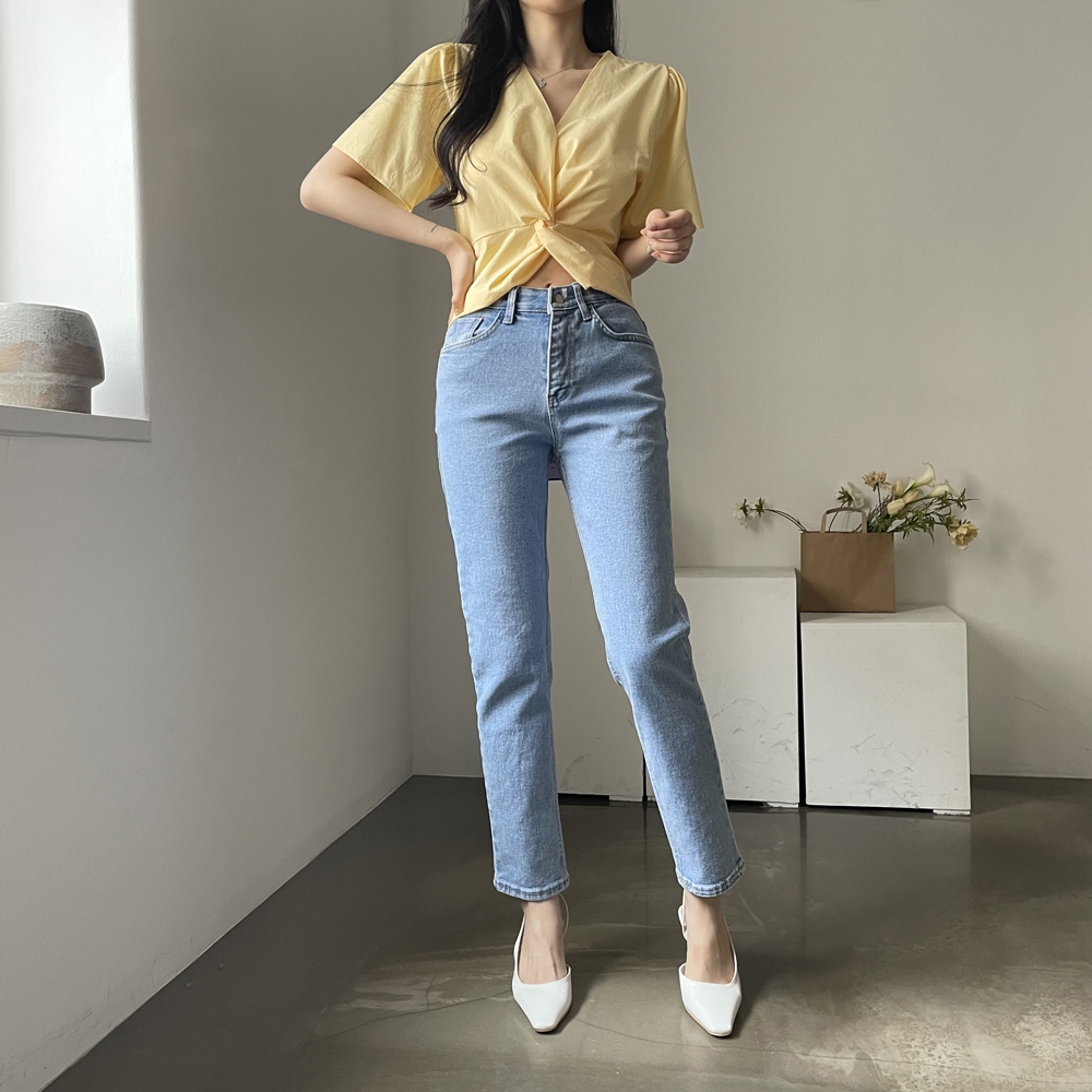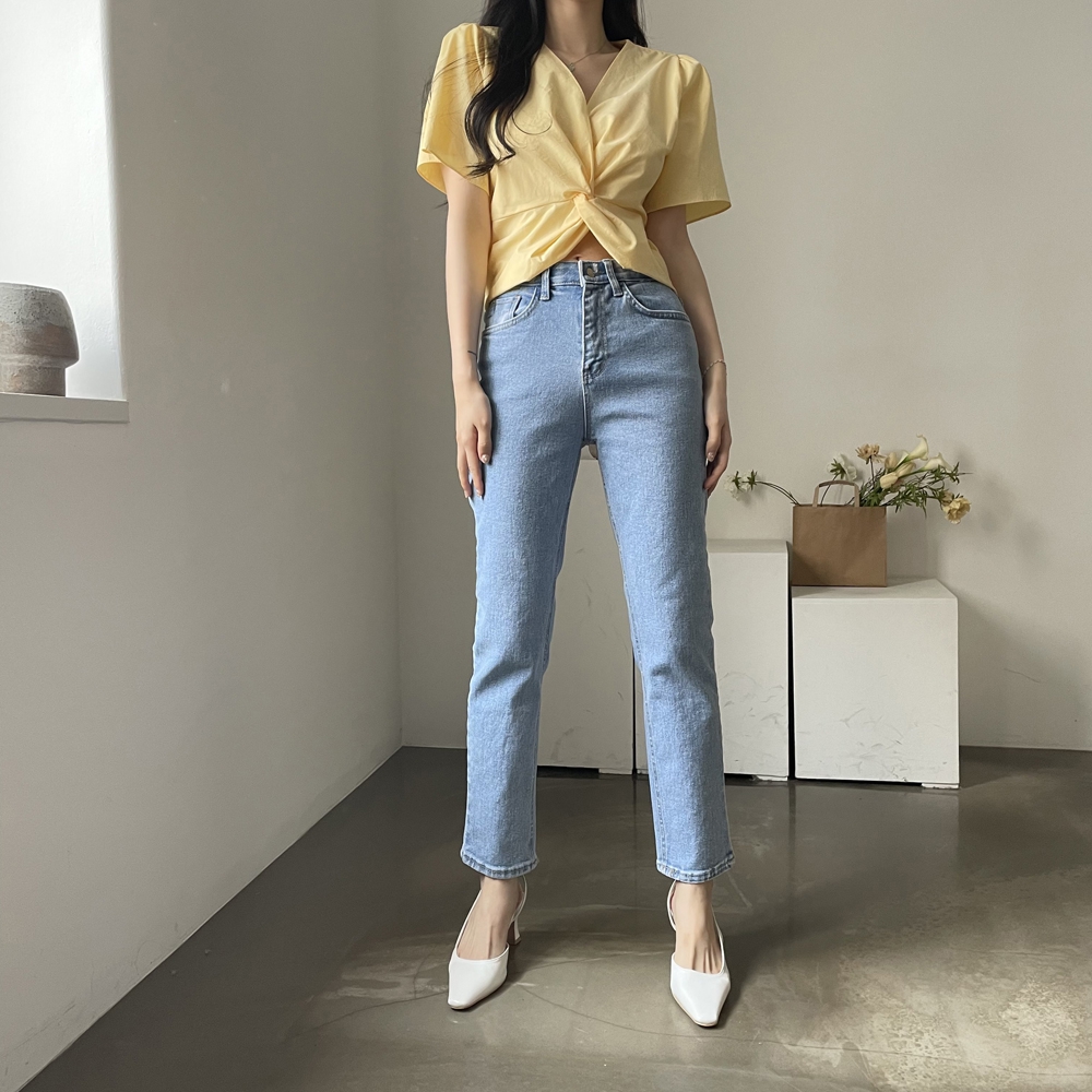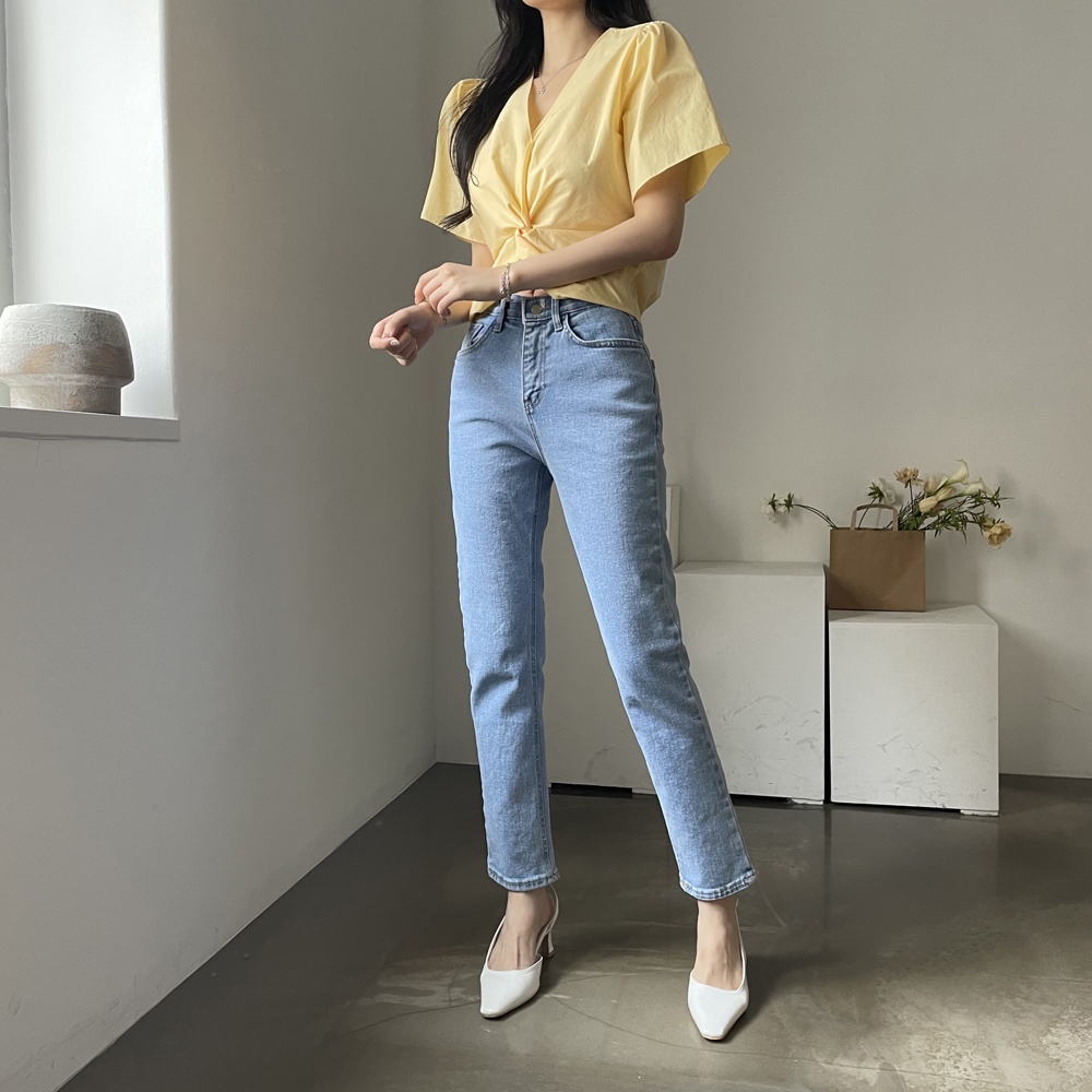 - 브이넥 뒷밴딩 꼬임 반팔 블라우스