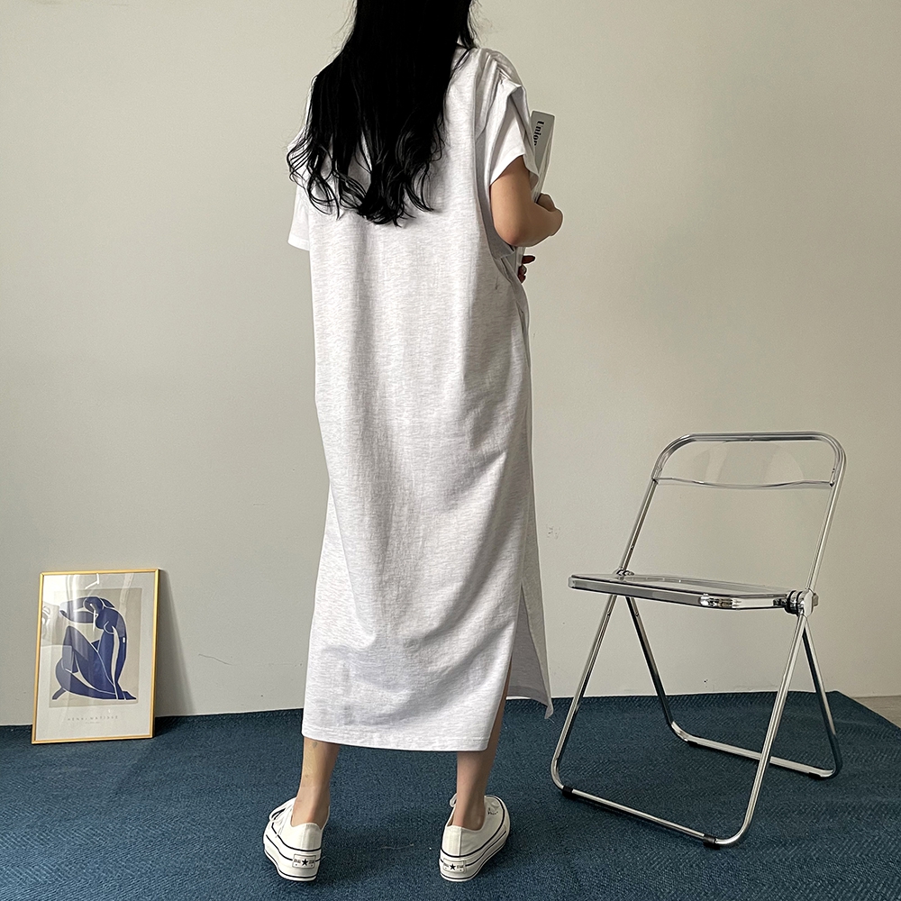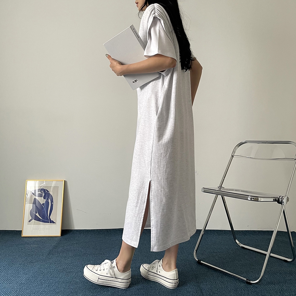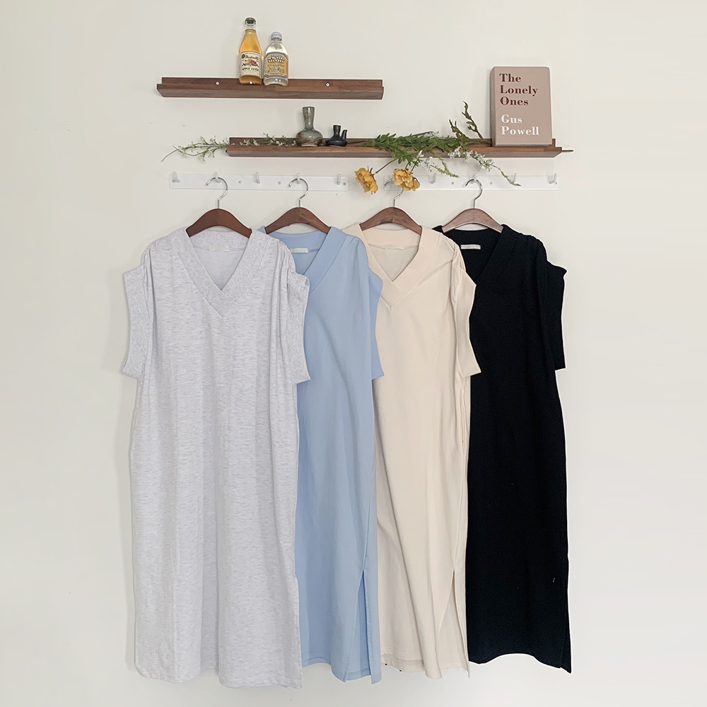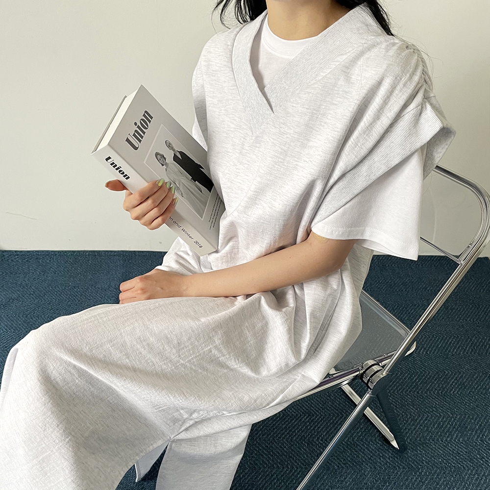- 브이넥 셔링 롱 베스트 원피스