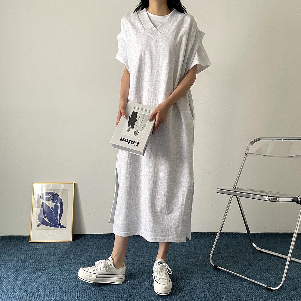 브이넥 조끼 원피스에요:)