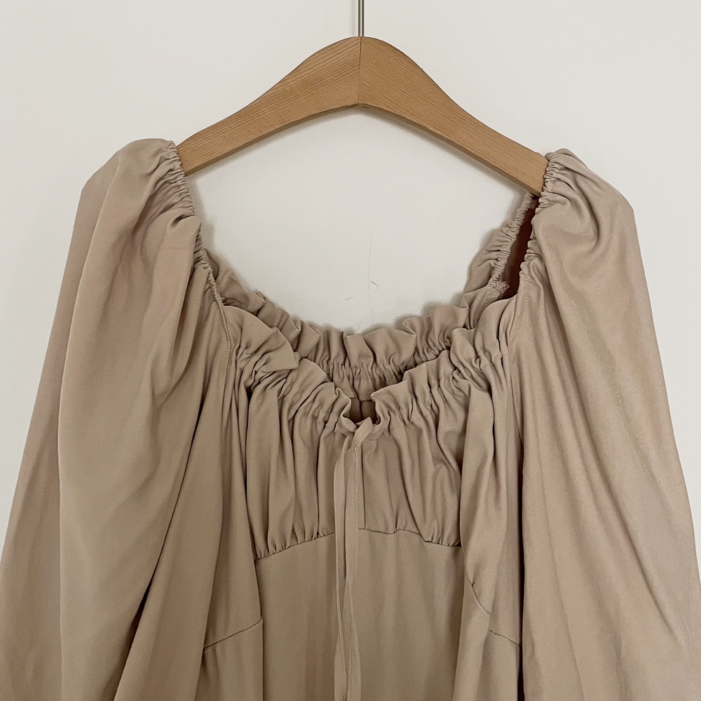 가슴 부분 끈으로 셔링디테일을 조절할 수 있어요!